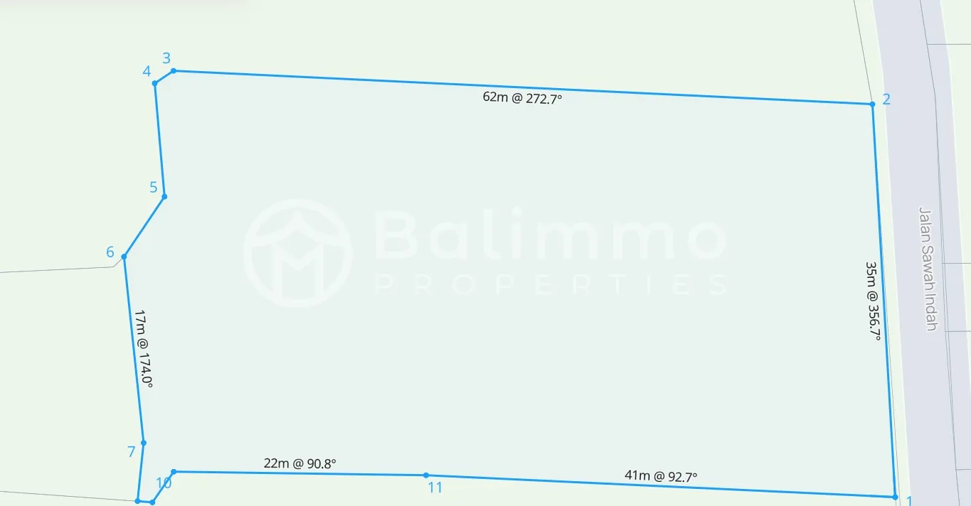 The total land size is 20 are, available for lease as a full plot. Located on Jalan Sawah Indah in Teges, Ubud, the land sits in an established area surrounded by villas and restaurants. It benefits from a 3-meter road access and a frontage width of approximately 35 meters, offering practical entry and visibility. The yellow zoning provides flexibility for residential and commercial development within a peaceful yet strategic environment. This plot is suitable for a private villa project or a commercial concept such as a boutique accommodation or restaurant. Its rectangular shape and generous width offer efficient building possibilities. Key details : • Land zone: Yellow zone (residential) • Permit : Hak Milik • Total size 20 are • Price : IDR 11.493.000 / are / year • Leasehold for 30 years BALIMMO PROPERTIES – Contact us for more information