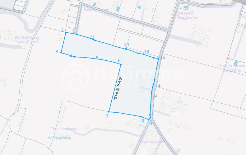 2.08 ARE LEASEHOLD LAND – NYANG NYANG, BALI – LM242 This leasehold land is located in the Nyang Nyang area, Bali. The land is suitable for long-term lease and ideal for developing a private villa or other permitted projects. Supported by good infrastructure and convenient access. Location Highlights • 500 meters to Paragliding Bali Adventure • 450 meters to Sanctus Uluwatu • 4 minutes drive to Nyang Nyang Beach • 5 minutes drive to Nunggalan Beach • 5 minutes drive to Uluwatu Temple Land Details • Land Size : 2.08 are • Length : 44 meters • Width : 23 meters • Location : Nyang Nyang, Bali • Ownership : Leasehold • Zoning : Pink zone • Lease Term Remaining: 23.5 years • Access Road : ± 4.5 meters • Split : No • Price / Are : IDR 23,000,000 / year BALIMMO PROPERTIES - Contact us for more information.