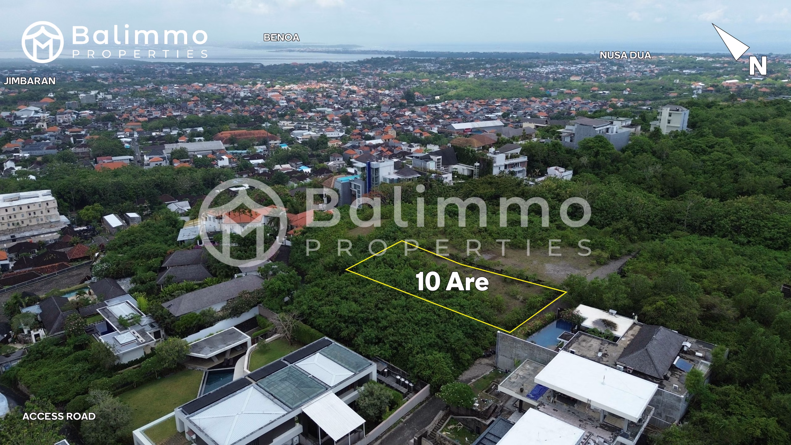 Located within the prestigious Tiara Nusa Villa Complex in Jimbaran, this land sits in an exclusive residential environment known for its luxury properties and celebrity residences. The area offers 6-meter-wide paved road access, underground electricity, and bore well water. The plot features ideal dimensions of 20 x 50 meters, making it perfect for a private villa or premium investment project. It enjoys one of the most remarkable panoramic views in Bali — overlooking airport, ocean and even Nusa Penida with both sunrise and sunset vistas visible from the site. Key details : • Land zone: Yellow zone (residential) • Permit : Hak Milik • Total size 10 are • Price : IDR IDR 1.077.375.000/ are • Freehold BALIMMO PROPERTIES – Contact us for more information.