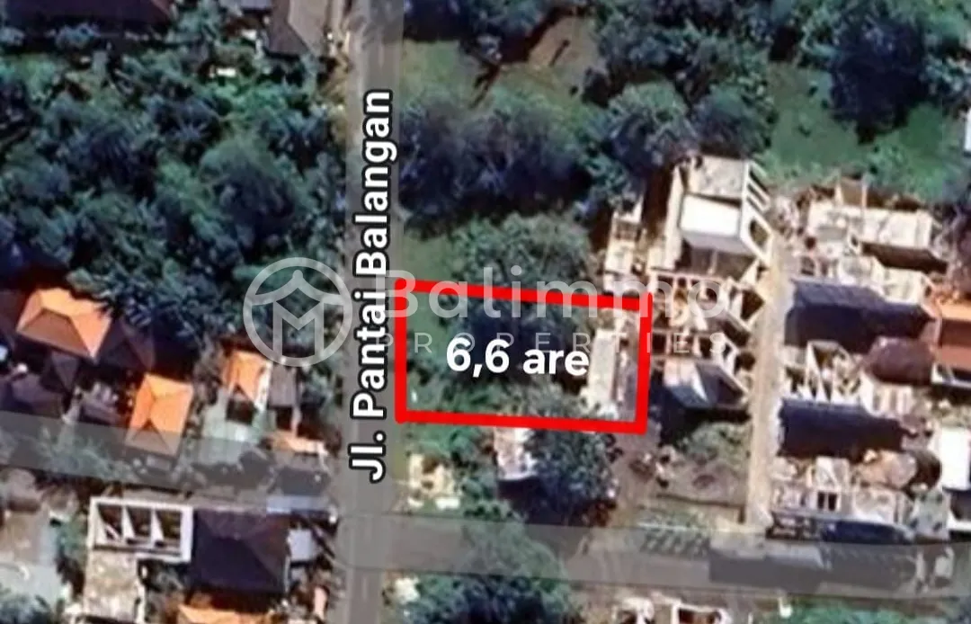 A total land size of 6.6 are (660 sqm) is available for purchase. The plot has practical dimensions of approximately 17 x 39 meters, allowing flexible development possibilities. The land is located in Jimbaran, Badung, within close proximity to Balangan Beach, reachable in approximately 5 minutes. The area benefits from a main 6-meter-wide road access, ensuring convenient entry. The surroundings are suitable for commercial activity, with growing development in the area. The land is held under Freehold title (SHM) and is zoned Pink, allowing commercial use. It is suitable for the development of villas, a guesthouse, or a restaurant project. The regular shape and commercial zoning make it well adapted for investment-oriented construction in a high-demand coastal area. Key details : • Land zone: Yellow zone (residential) • Permit : Hak Milik • Total size 6,6 are • Price : IDR 862.000.000 / are • Freehold BALIMMO PROPERTIES – Contact us for more information.