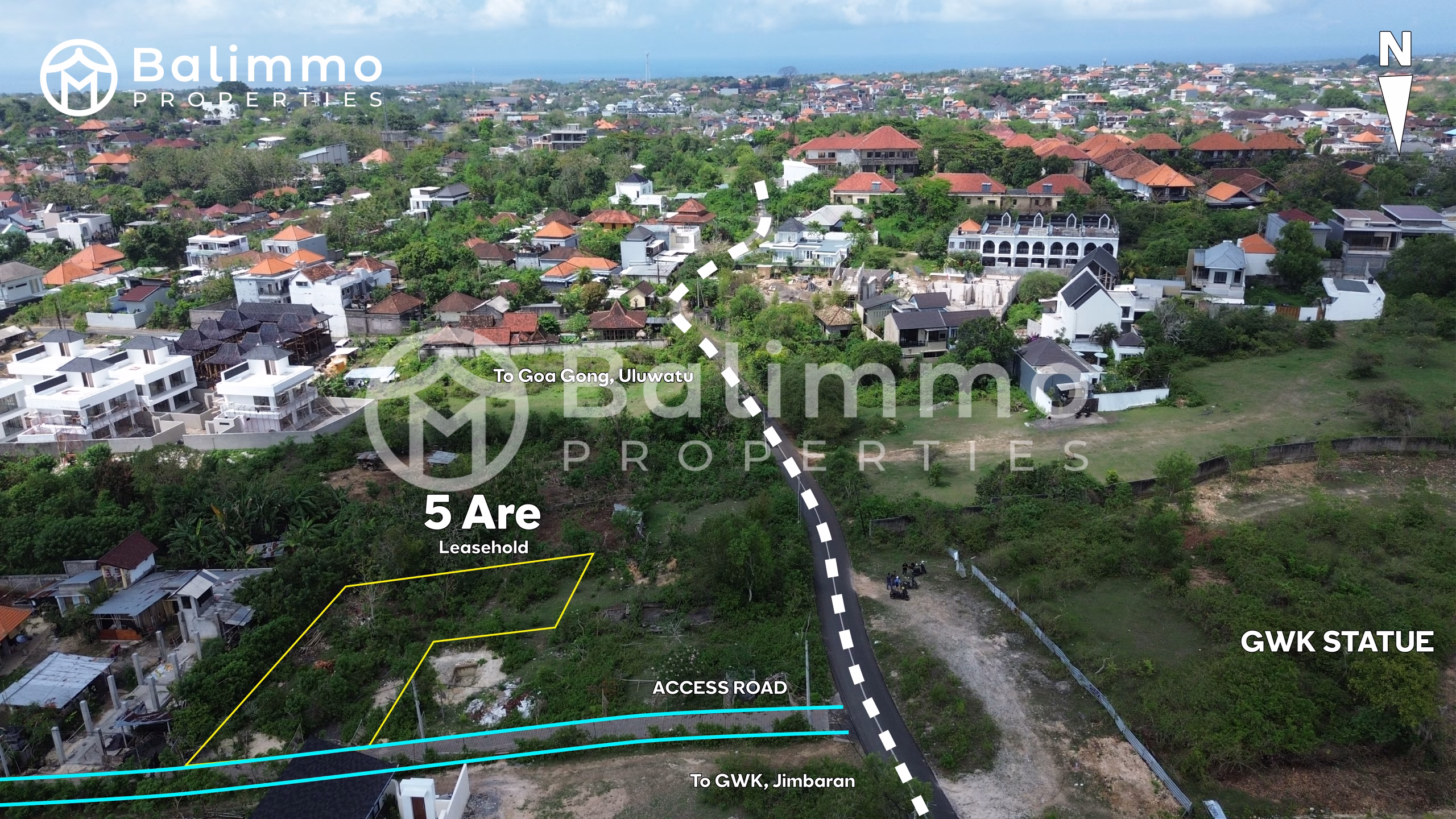 5 are available for lease (50 m length x 10 m width). Located in Ungasan, this plot offers a strategic position with easy road access. The area is developing quickly while maintaining a peaceful residential atmosphere. Just a short drive to shops, cafes, and beaches, the land also enjoys a direct view of the iconic Garuda Wisnu Kencana (GWK) statue. This rectangular plot is ideal for building a private villa or a profitable investment project. With a 25-year leasehold, the land provides long-term security. Its flat surface makes construction straightforward, while the location offers excellent potential for capital growth. Key details : • Land zone: Yellow zone (residential) • Permit : Hak Milik • Price : IDR 13.050.000 / are / year • Leasehold for 25 years BALIMMO PROPERTIES – Contact us for more information.
