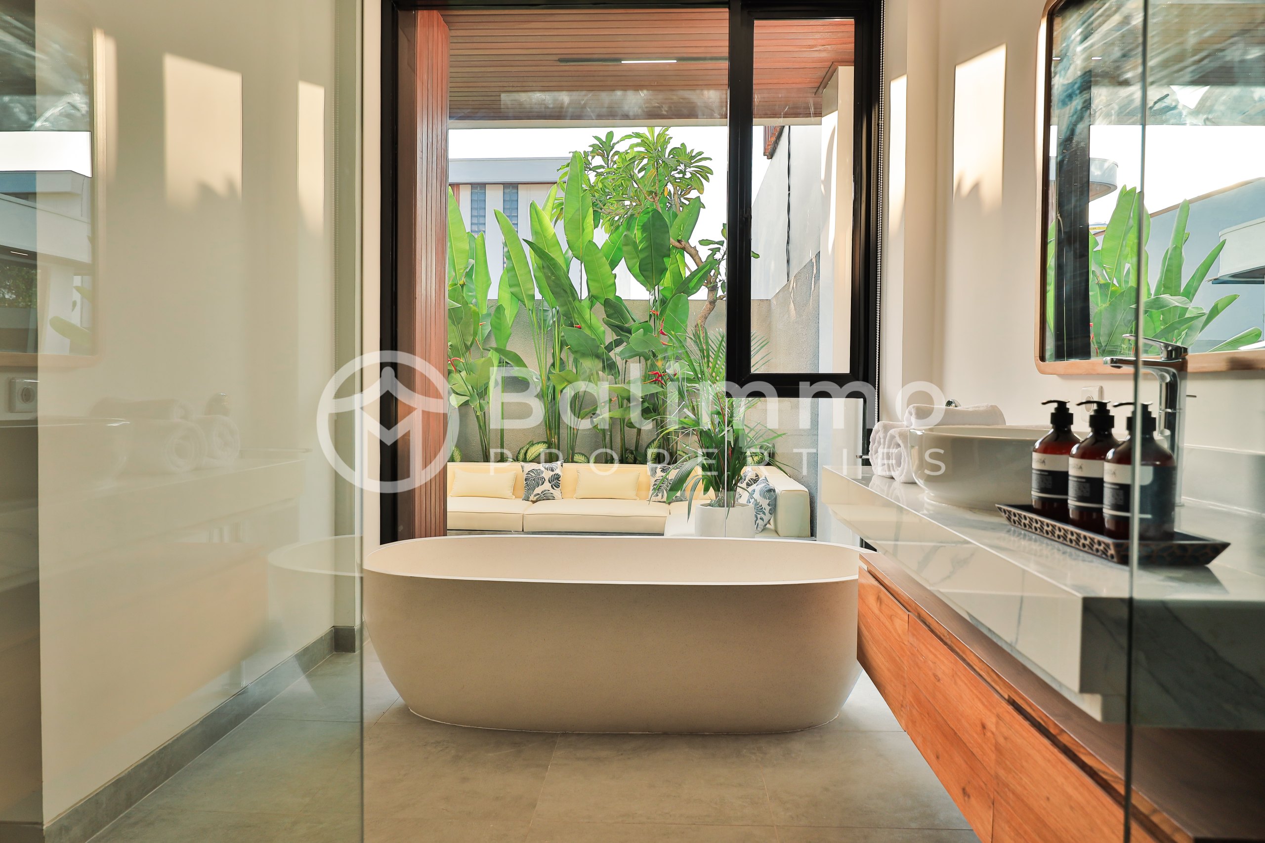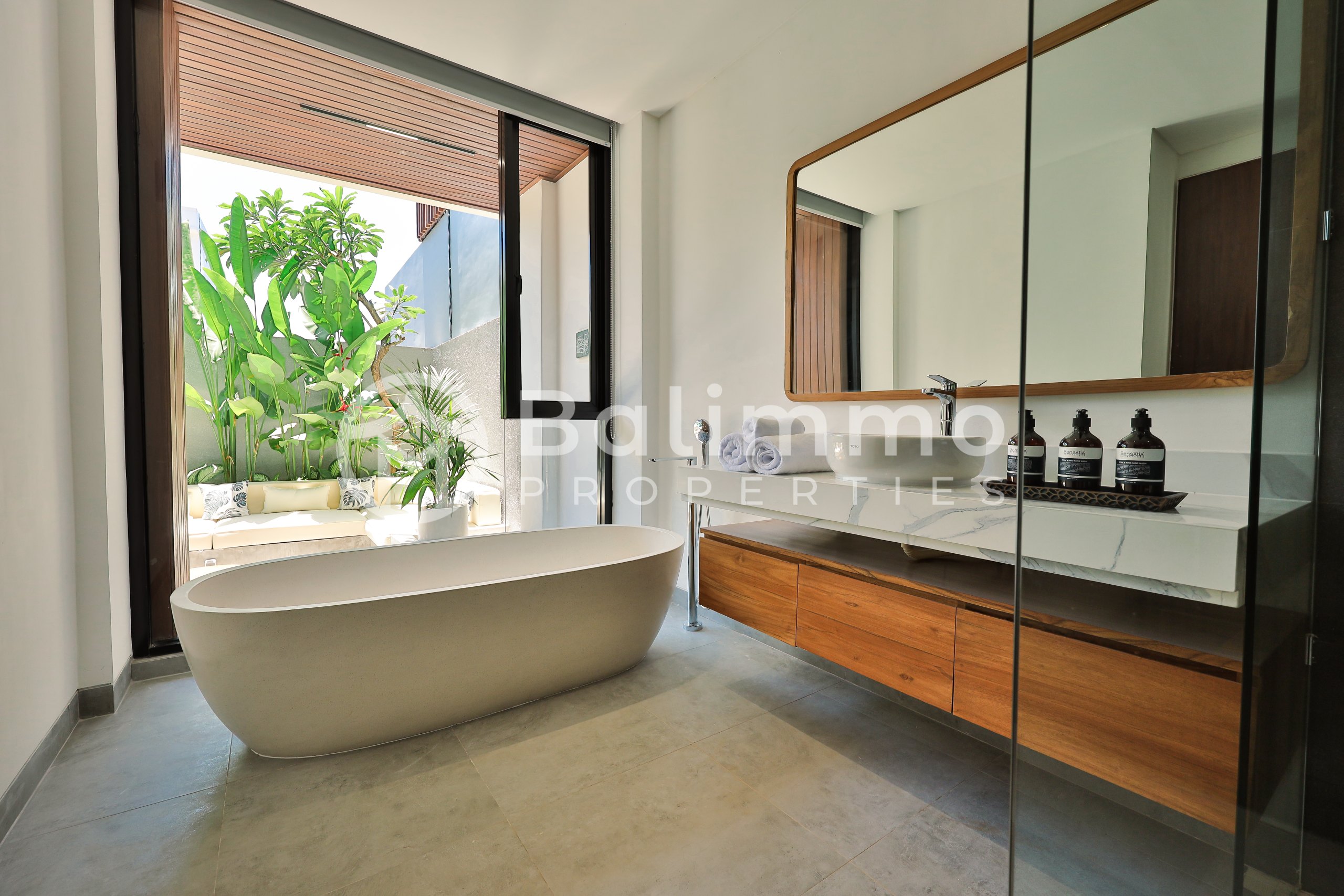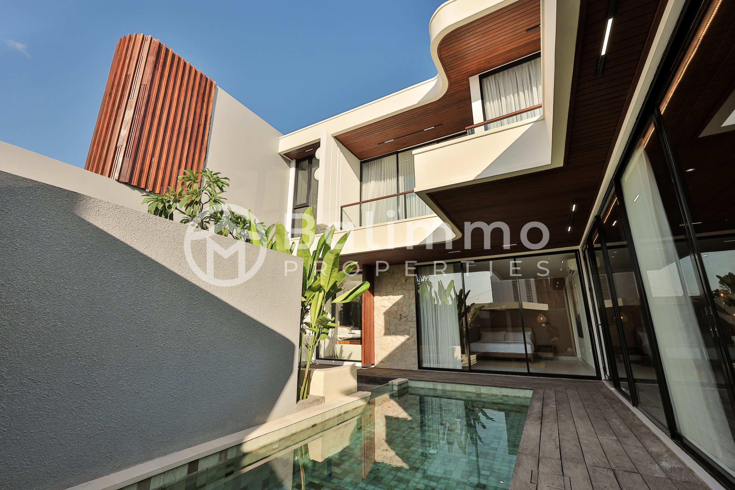 2 Identical Freehold Villas in Prime Pererenan Located in a sought-after area of Pererenan, these two newly built villas sit side by side in a quiet yet central setting, close to cafes, restaurants, and the beach. Each unit features modern architecture with a gated entrance, landscaped garden, private parking, and a 17 m² swimming pool. Natural stone walls and tropical greenery complement the clean lines of the design. Each villa offers 3 bedrooms and 3 bathrooms across 183 m² of built space. The layout includes a bright living and dining area, a fully equipped kitchen, and large glass doors that maximize natural light. Both units are sold fully furnished with high-quality pieces. Freehold Land size per unit: 200 m² Building size per unit: 183 m² Year of construction: 2023 – completed in 2025 Fully furnished 17 m² private pool Asking price: IDR 6 billion per unit (negotiable) Yellow Zone – SHM permit BALIMMO PROPERTIES – Contact us to schedule a visit.