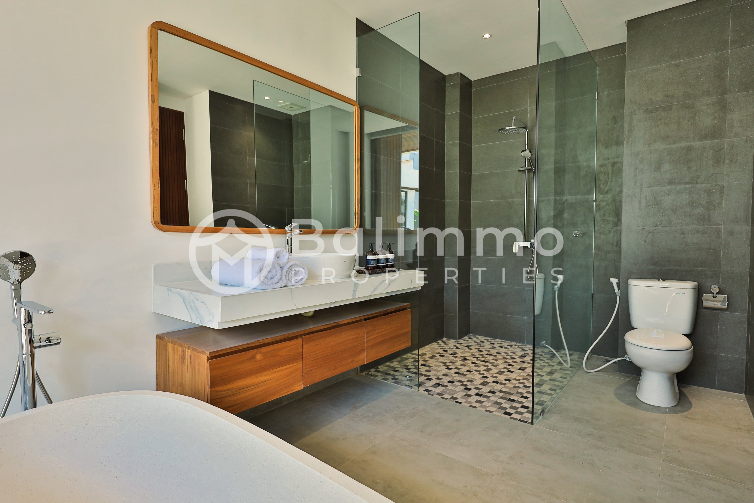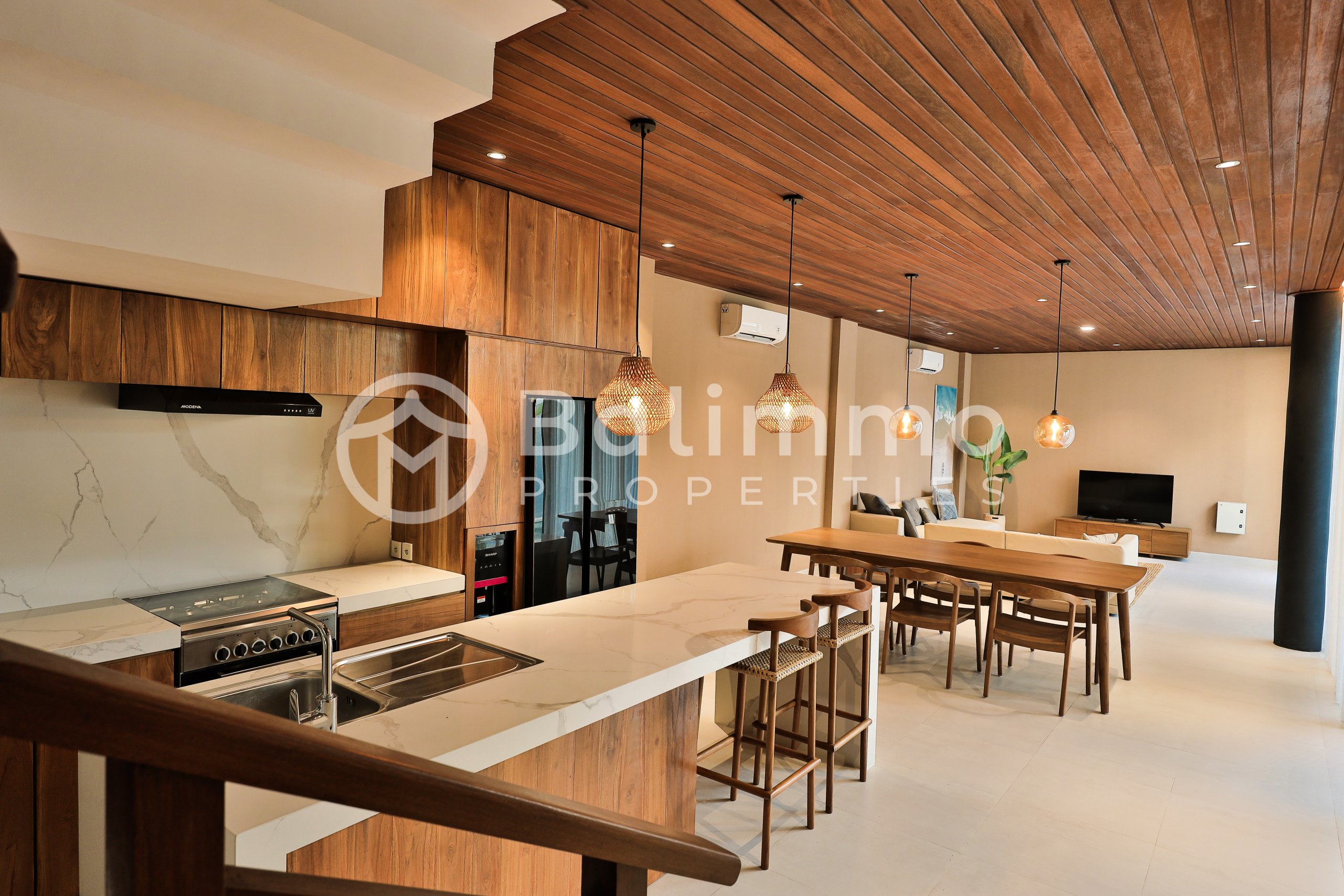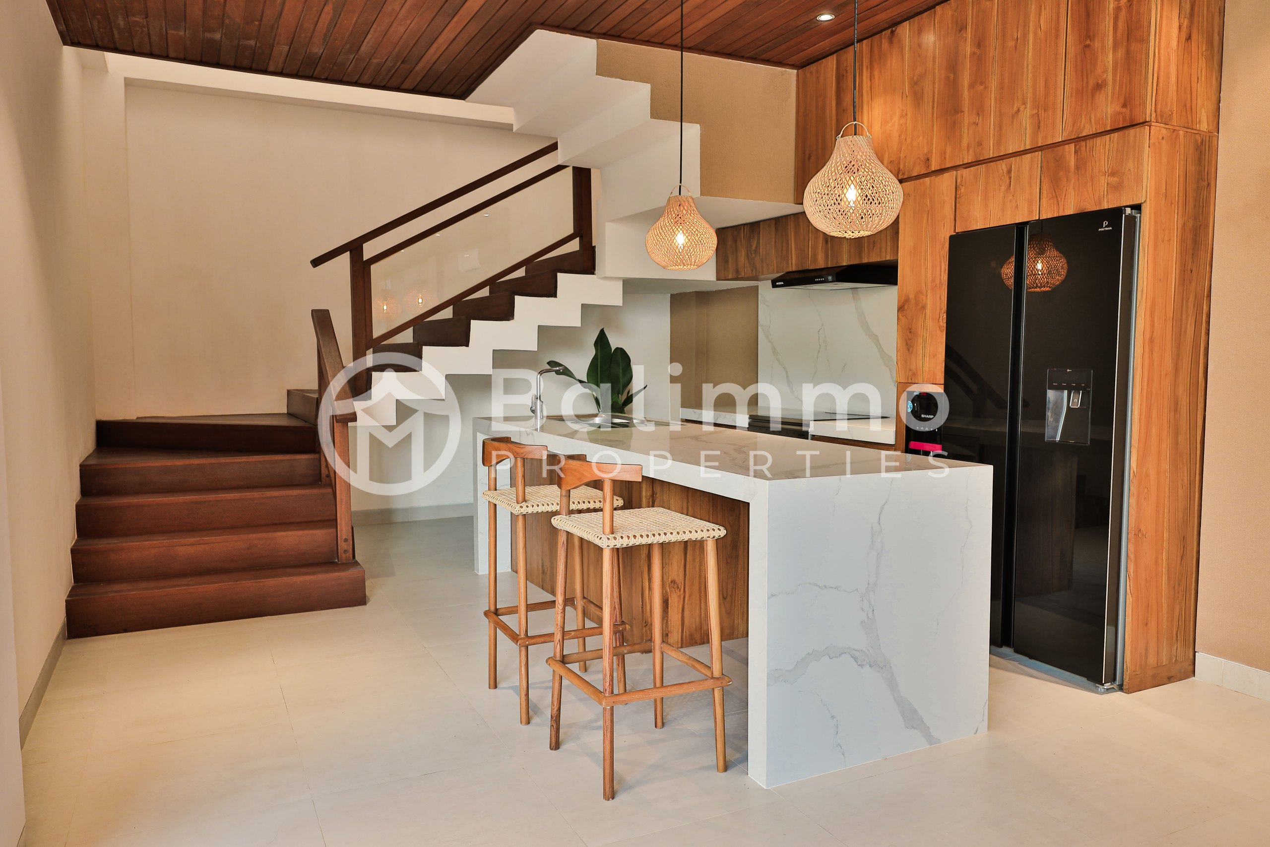 2 Identical Freehold Villas in Prime Pererenan Located in a sought-after area of Pererenan, these two newly built villas sit side by side in a quiet yet central setting, close to cafes, restaurants, and the beach. Each unit features modern architecture with a gated entrance, landscaped garden, private parking, and a 17 m² swimming pool. Natural stone walls and tropical greenery complement the clean lines of the design. Each villa offers 3 bedrooms and 3 bathrooms across 183 m² of built space. The layout includes a bright living and dining area, a fully equipped kitchen, and large glass doors that maximize natural light. Both units are sold fully furnished with high-quality pieces. Freehold Land size per unit: 200 m² Building size per unit: 183 m² Year of construction: 2023 – completed in 2025 Fully furnished 17 m² private pool Asking price: IDR 6 billion per unit (negotiable) Yellow Zone – SHM permit BALIMMO PROPERTIES – Contact us to schedule a visit.