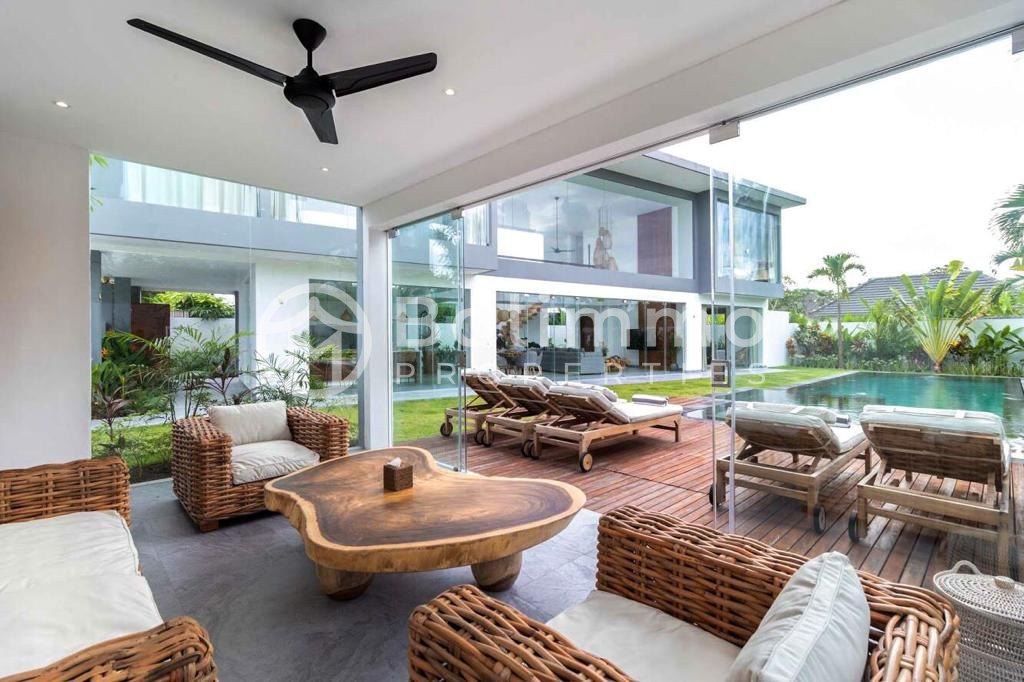 Luxury 5-Bedroom Villa with Rooftop and Sauna in Berawa, Canggu Located in the sought-after Berawa area of Canggu, this villa is within walking distance to the beach and close to international schools, cafés, and restaurants. The neighborhood is vibrant yet residential, making it ideal for both living and investment. Set on 570 m² (5.7 are) of land with a 660 m² building, the property spans two floors plus a rooftop completed in 2022. The outdoor area includes a 15-meter swimming pool, landscaped garden, gazebo, terrace, and covered parking for two cars and bikes. The rooftop is designed as an additional leisure zone, featuring a sauna, fire pit gazebo, shower, lounge area, and storage room. The interior comprises five spacious ensuite bedrooms, a guest bathroom, open-plan living and dining areas, and a fully equipped modern kitchen. Staff quarters with laundry and storage are also provided. The villa is fully furnished with premium finishes, nine air-conditioning units, fiber optic internet, and two separate PLN connections (23 kW each). Built in 2019 and maintained to a high standard. Leasehold until 6 October 2051 (26.5 years remaining) with a guaranteed 20-year extension at market price, renewable every five years. IMB and Pondok Wisata included. Price: USD 1,990,000 BALIMMO PROPERTIES – Contact us to schedule a visit.