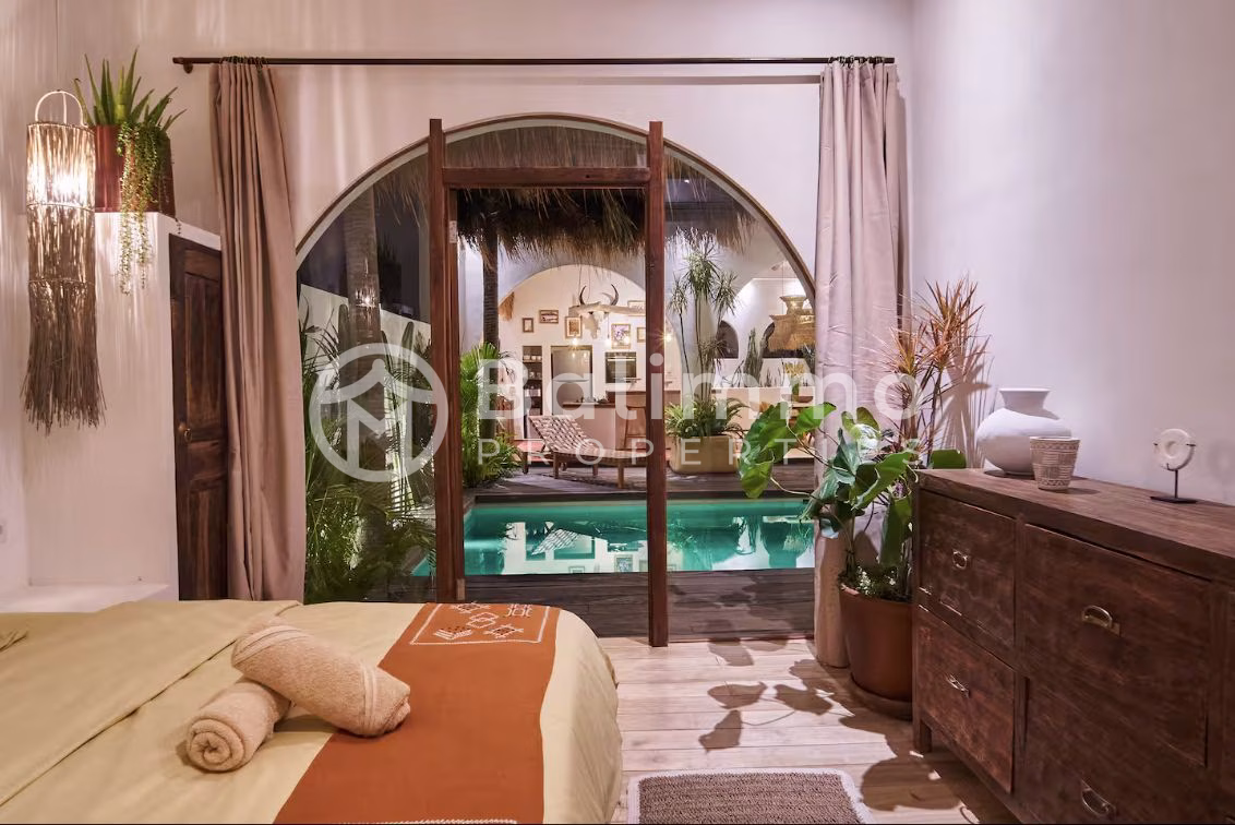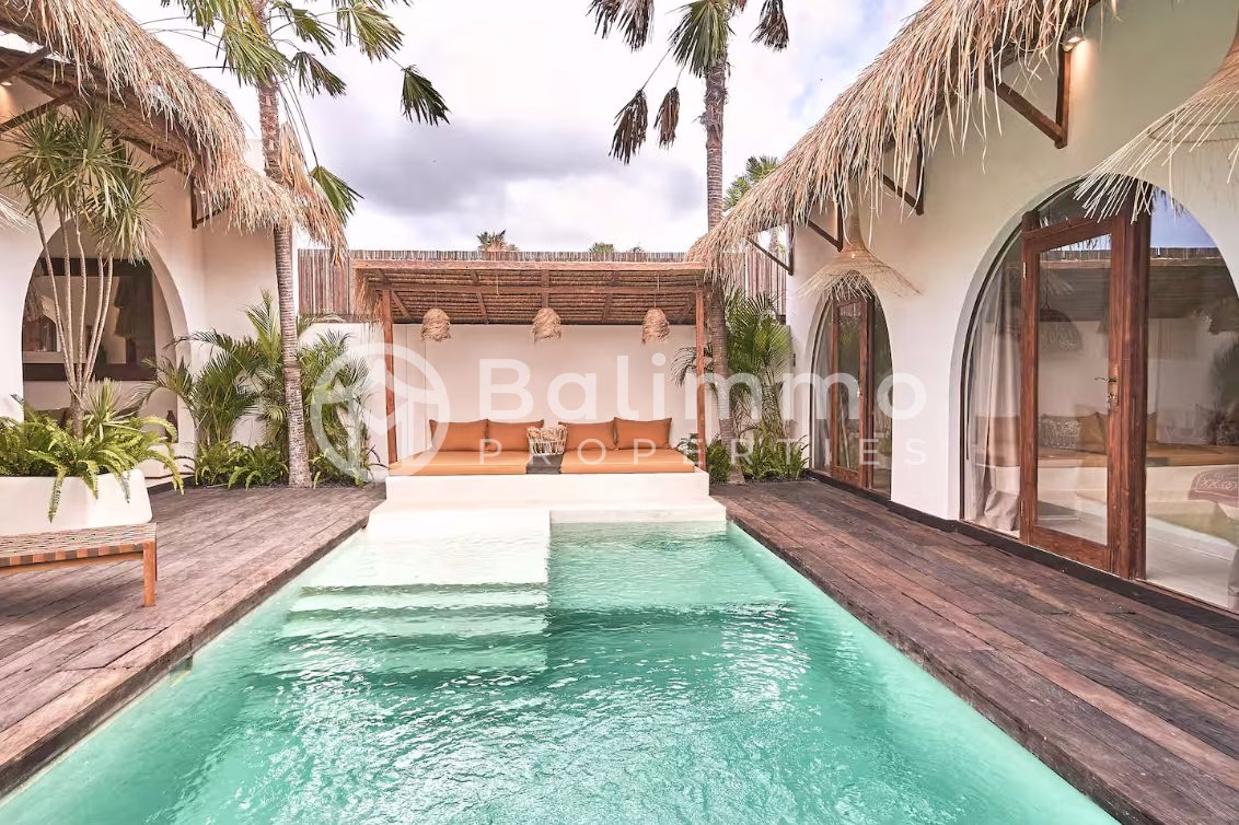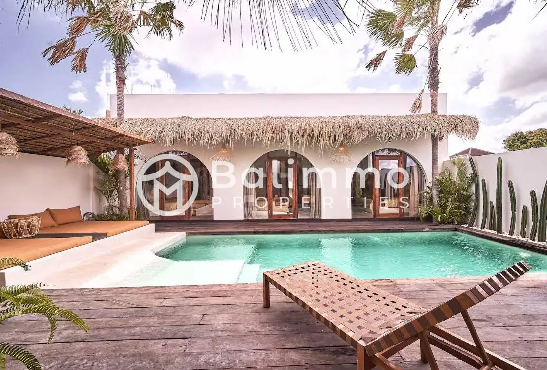 Charming 3-Bedroom Villa in Berawa Located in the heart of Berawa, this villa offers a peaceful setting in one of Bali’s most desirable neighborhoods. Set on 200 m² of land, the property features a private 8 x 3.5 meter swimming pool bordered by a 30 m² terrace—ideal for sunbathing or outdoor dining. The villa includes three bedrooms: two around 15 m² and one approximately 13 m². Each has its own bathroom (toilet and shower), air conditioning, storage space, and views of the pool. The bright, open-plan living area spans 60 m², combining a lounge and fully equipped kitchen that opens directly to the pool and tropical garden. Located in the Pink Zone with IMB permit, the property is well-suited for residential living or long-term stays. Land size: 200 m² Private pool: 8 x 3.5 m 3 Bedrooms – 3 Bathrooms Open-plan living area Fully furnished Pink Zone – IMB permit LEASEHOLD 25 YEARS BALIMMO PROPERTIES – Contact us to schedule a visit.