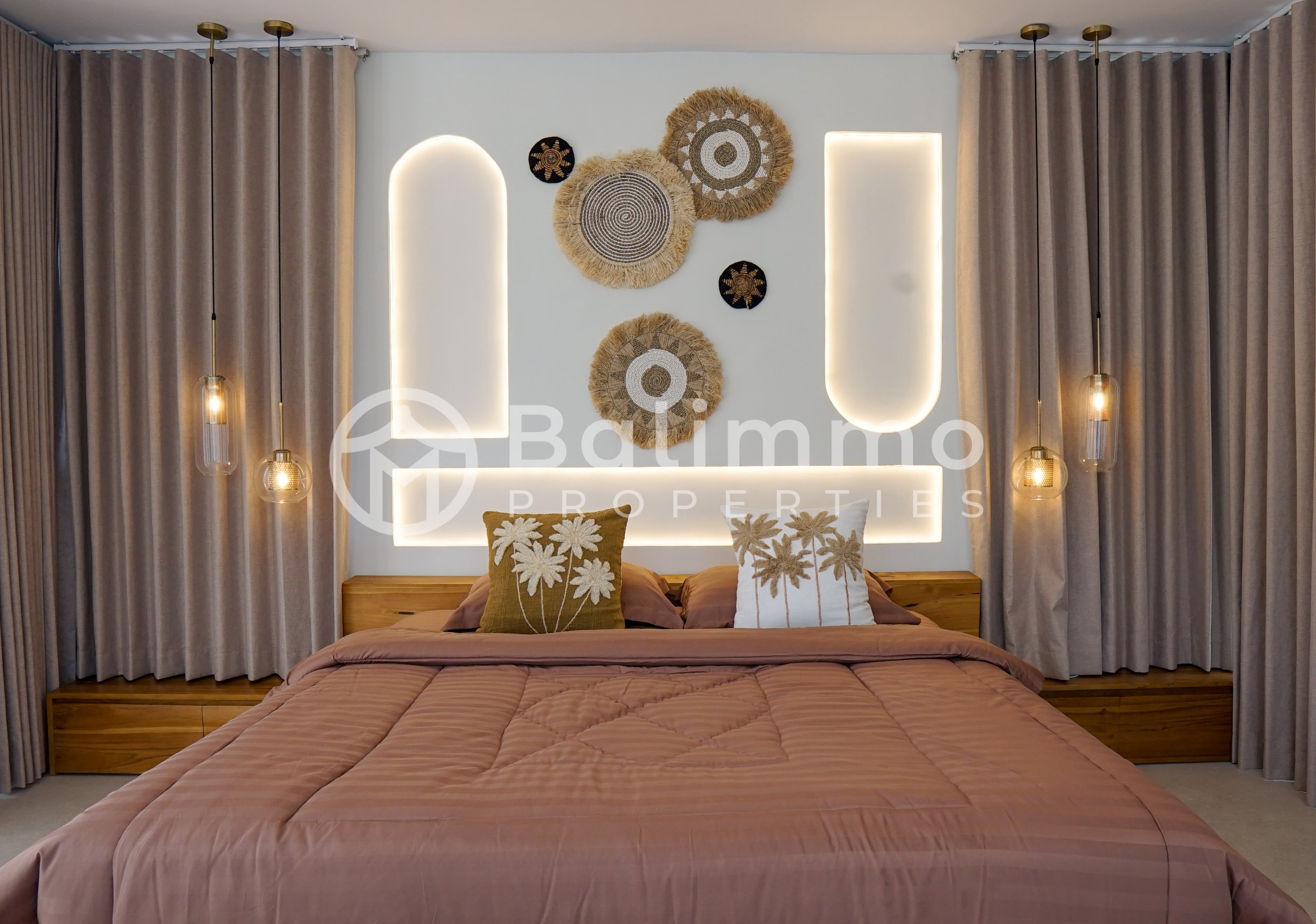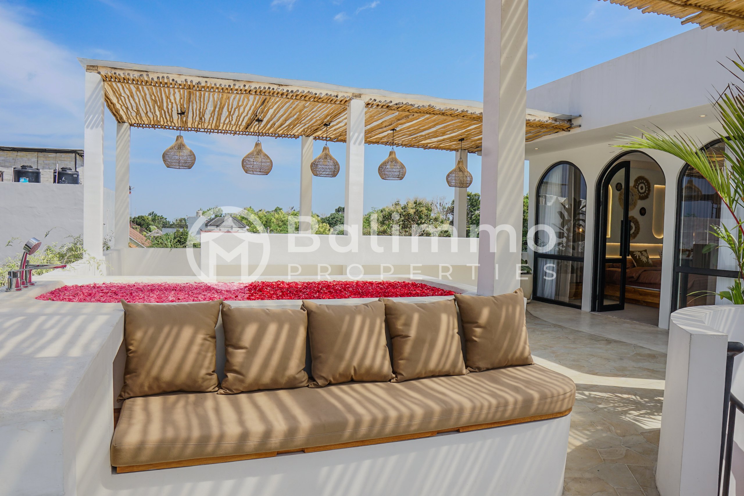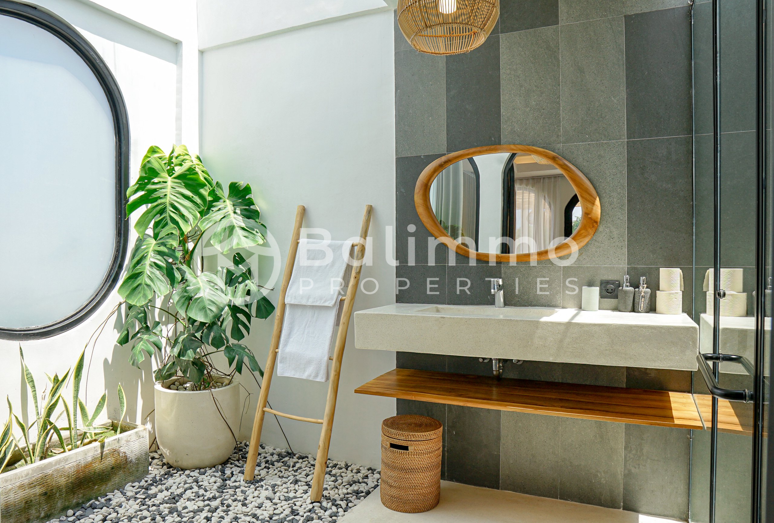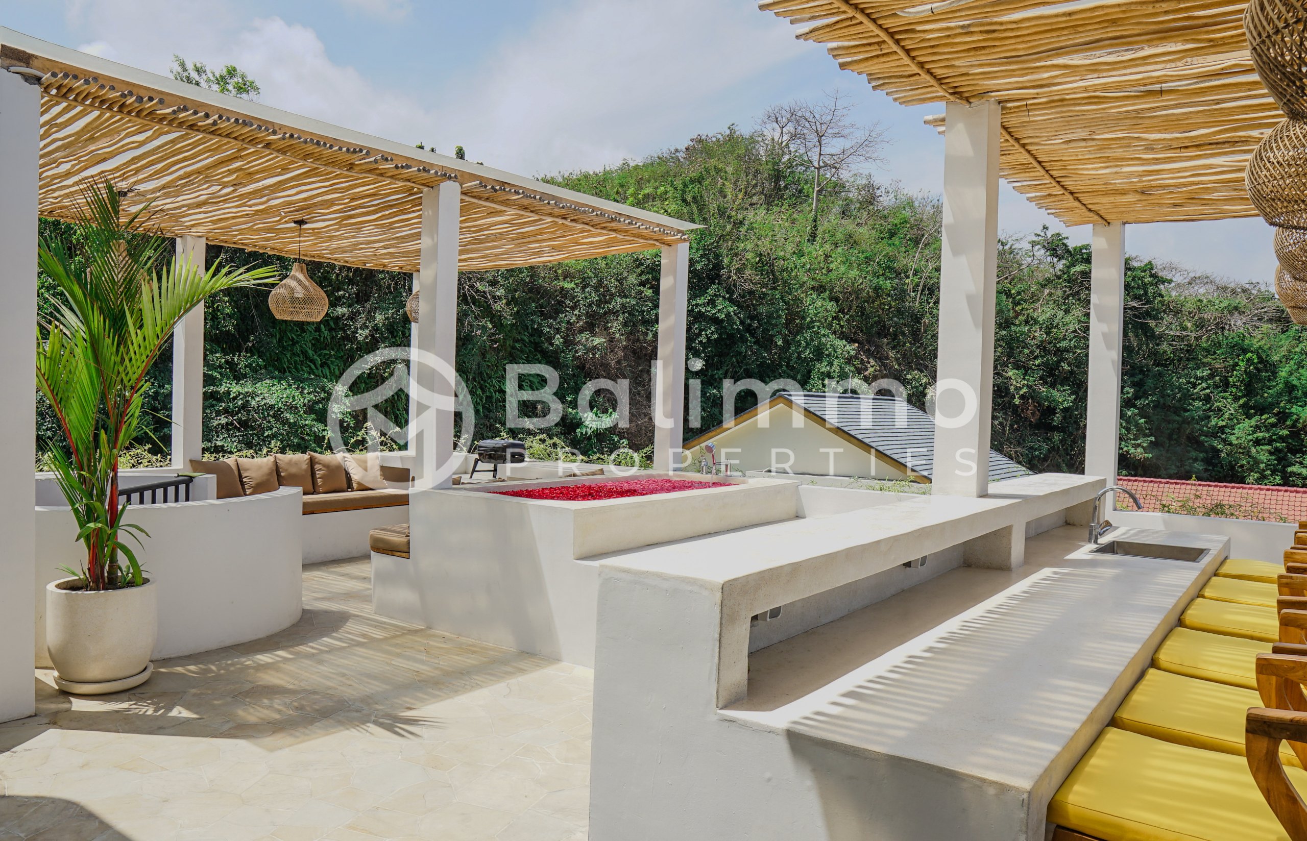 Modern Leasehold Villa with Rooftop Sea View – Ungasan Located in a premium residential area of Ungasan, just 5 minutes by motorbike from Melasti Beach. The neighborhood is quiet and upscale, with 6-meter-wide road access and surrounded by other high-end villas. Leasehold – 25 years: IDR 4.40 billion Leasehold – 30 years: IDR 5.2 billion Extension available Land size: 150 m² Building size: 285 m² Year of construction: 2025 Fully furnished Rooftop sea view PBG/SLF in process Electricity: 16,500 W Yellow Zone – SHM permit BALIMMO PROPERTIES – Contact us to schedule a visit.
