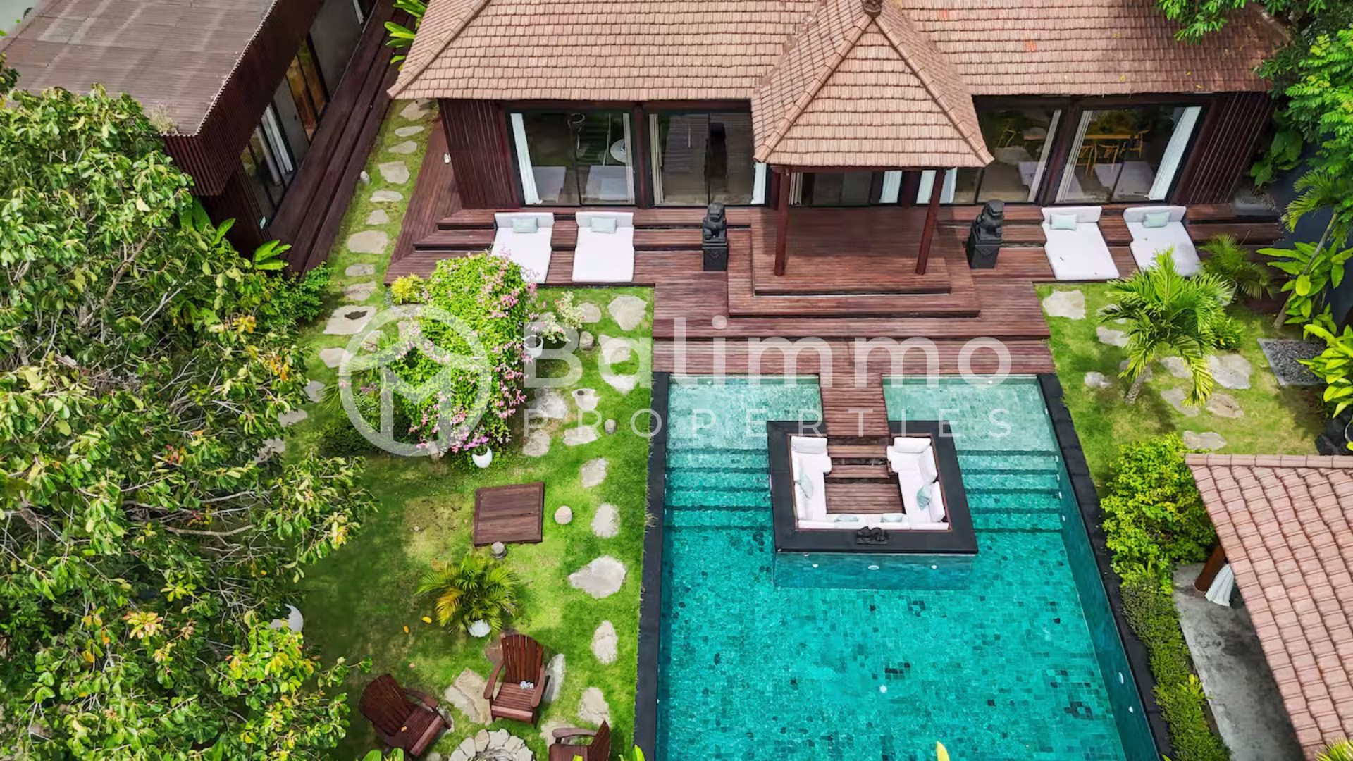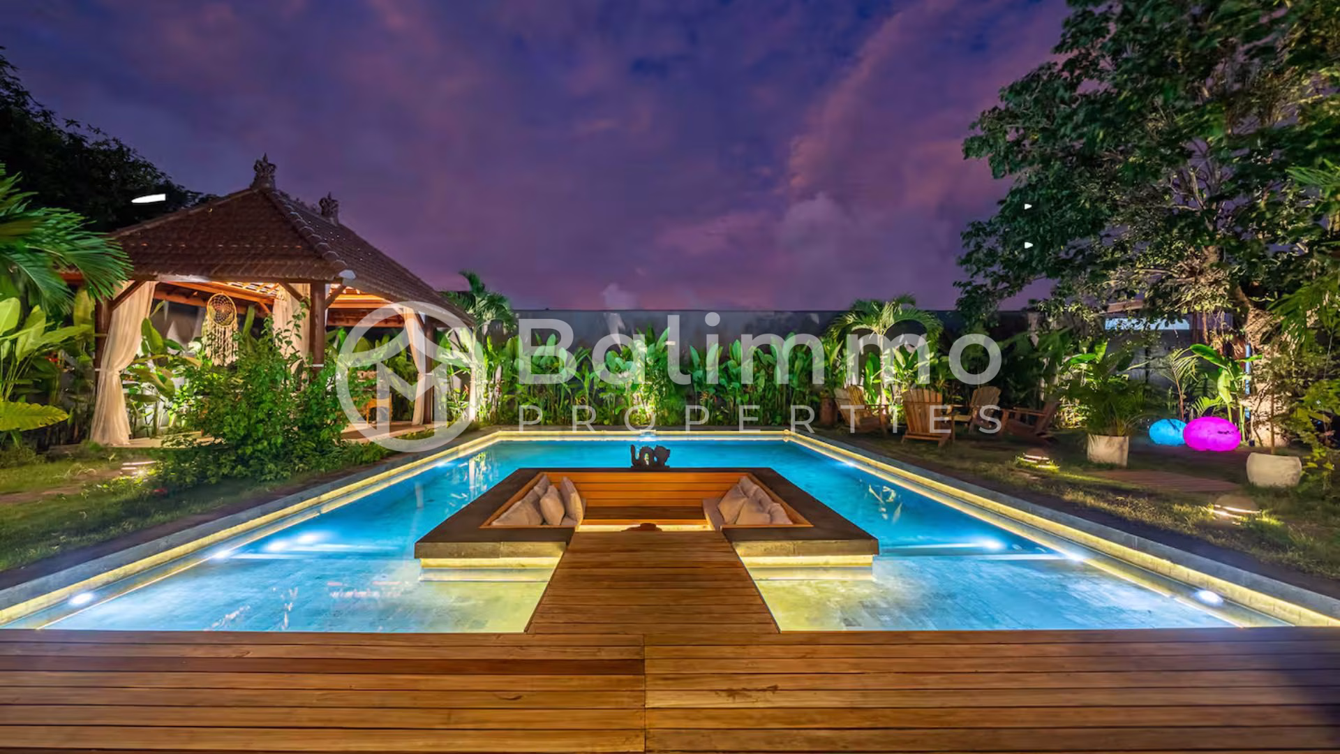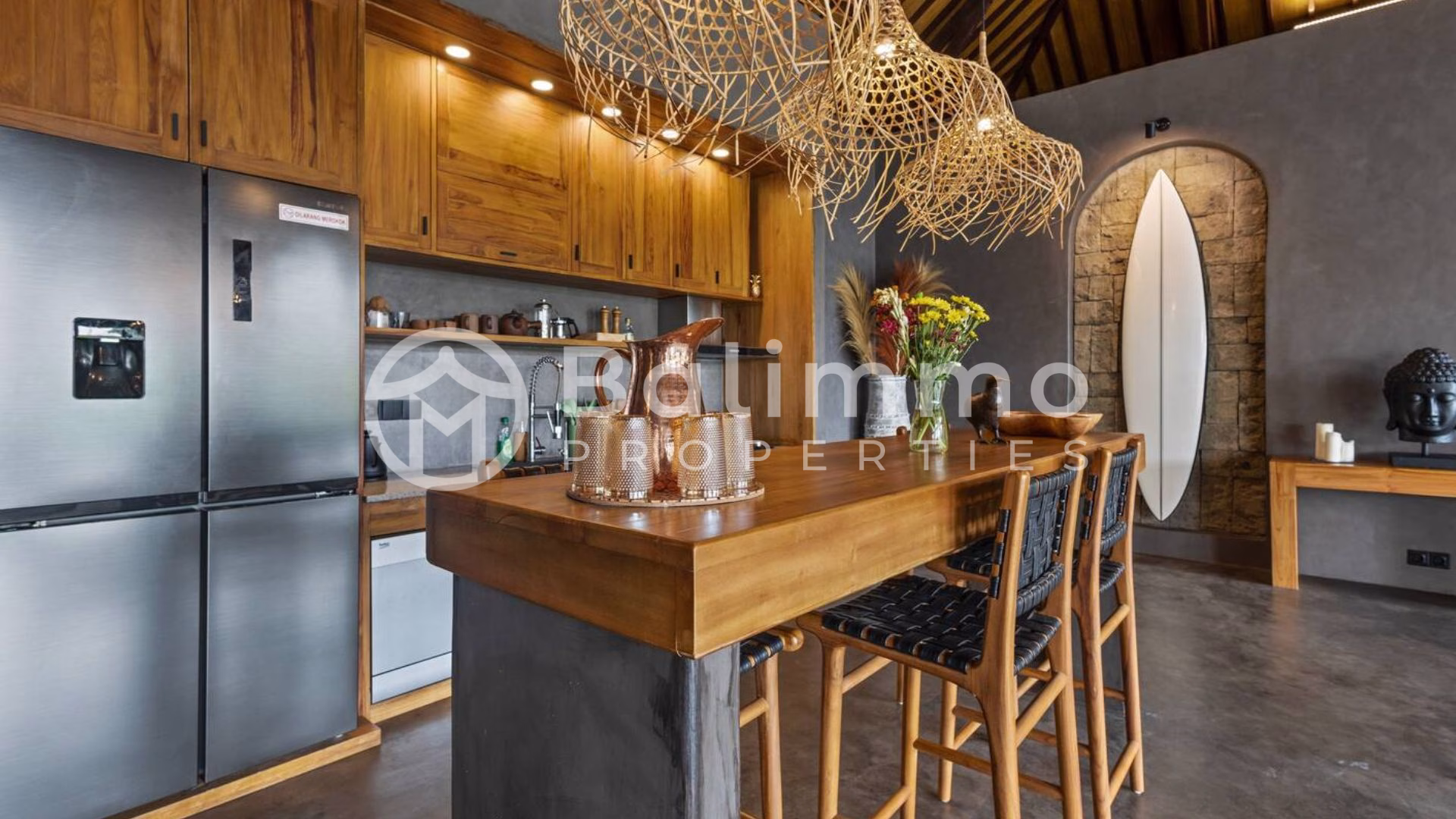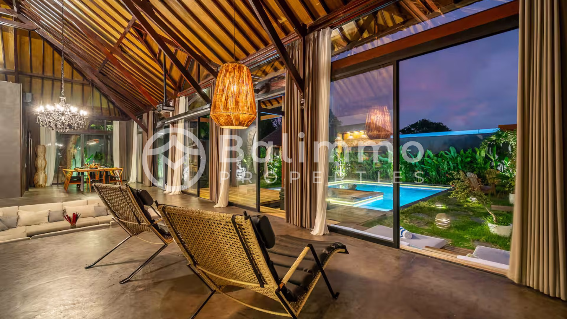 Modern 4-Bedroom Designer Villa with Award-Winning Architecture – Jimbaran Nestled within a secure residential complex in Jimbaran’s Bukit area, this villa offers a serene environment surrounded by tropical gardens and upscale homes. The property is only minutes from Bali’s most beautiful beaches, including Jimbaran Bay, Balangan, and Nusa Dua, and close to restaurants, international schools, and wellness centers. Ngurah Rai International Airport is a 25-minute drive away. Built on a 711m2/7.1 are plot, the villa showcases contemporary Balinese architecture with refined finishes and open tropical design. The outdoor area features a 72 m² swimming pool, sun deck, and a manicured garden with lush greenery. A covered carport with automatic gate ensures comfort and security. The property also includes a private well, bio septic tank, and LED exterior lighting for optimal efficiency and convenience. Spanning 284 m² of living space, the villa comprises four spacious ensuite bedrooms, each with direct terrace or pool access. The open-plan living area integrates a modern kitchen equipped with premium appliances and a dining space for up to eight guests. Additional features include a home cinema with laser projector and high-quality audio system, a private sauna, and a yoga room. High-end materials, designer lighting, and natural textures create an elegant, warm atmosphere throughout. Additional Information • Leasehold: 28 years + guaranteed 20-year extension • Land size: 711m2/7.11 are • Permit : SHM • Building size: 284 m² • Year: 2024 • Fully furnished • Air conditioning and high-speed internet • Ideal for residential or rental investment (estimated annual yield up to 20.8%) • Price: IDR 13,335,000,000 BALIMMO PROPERTIES – Contact us to schedule a visit.