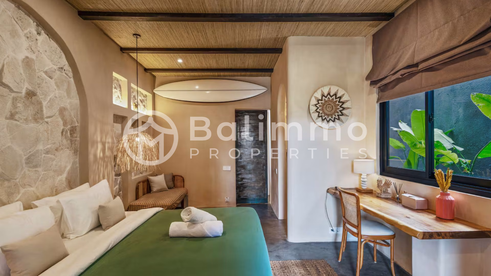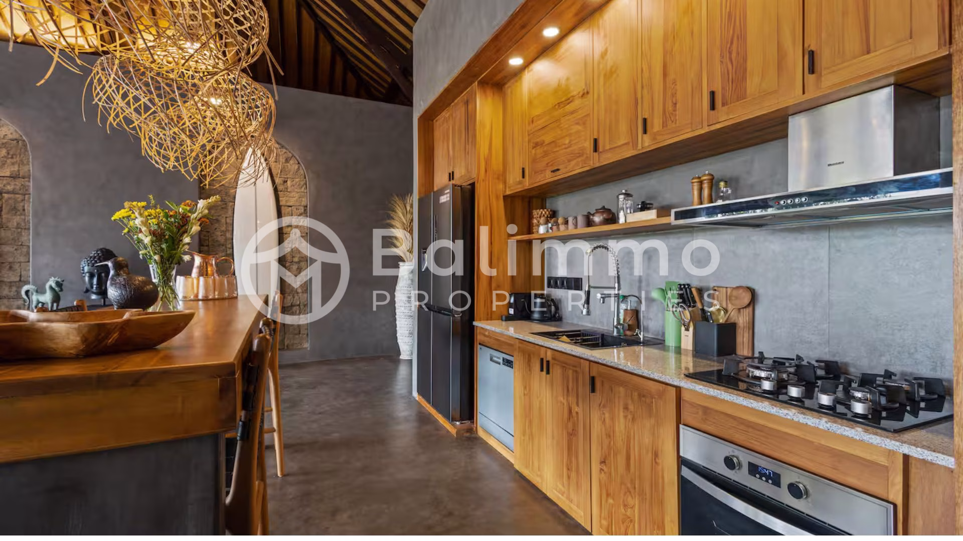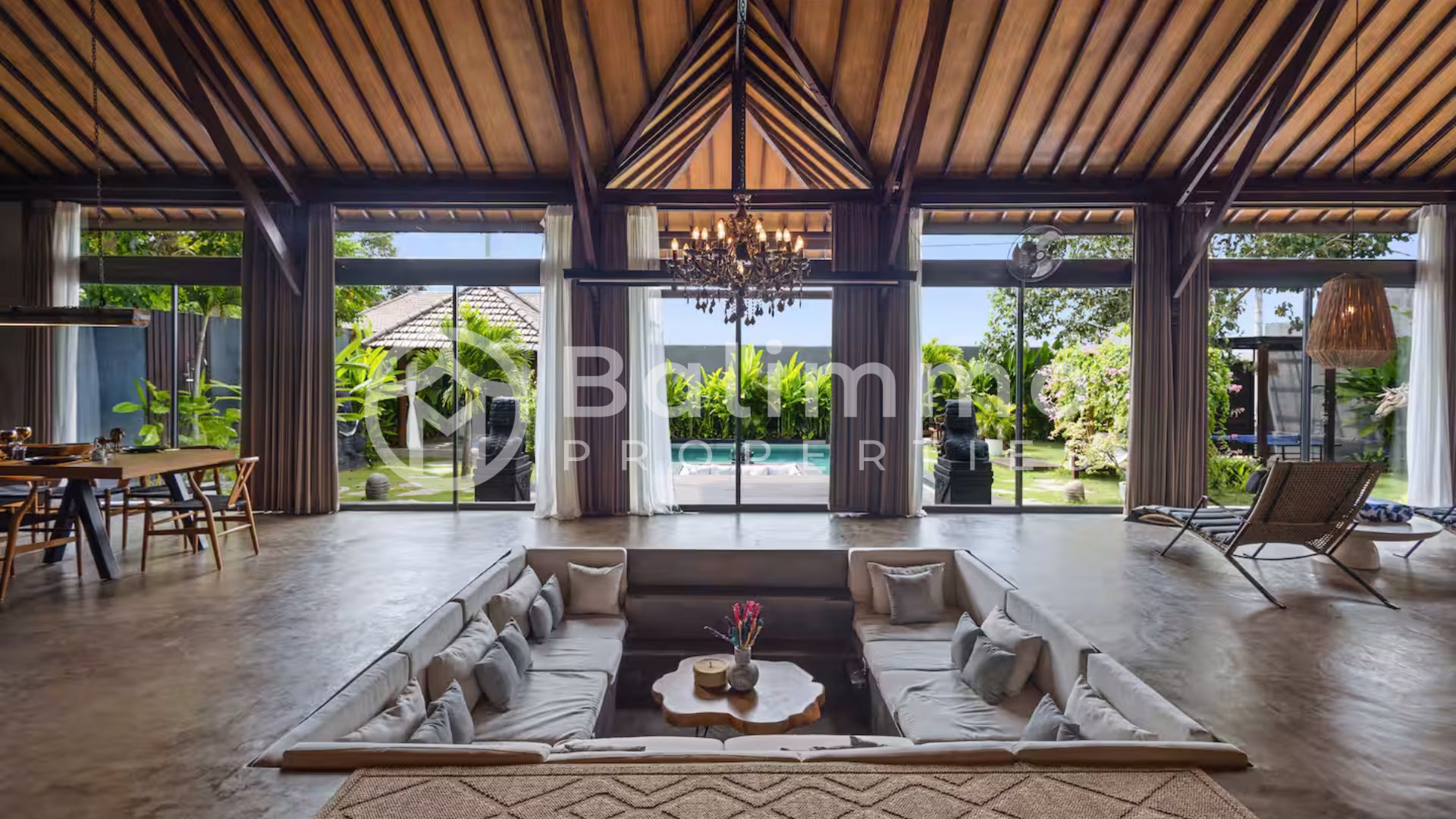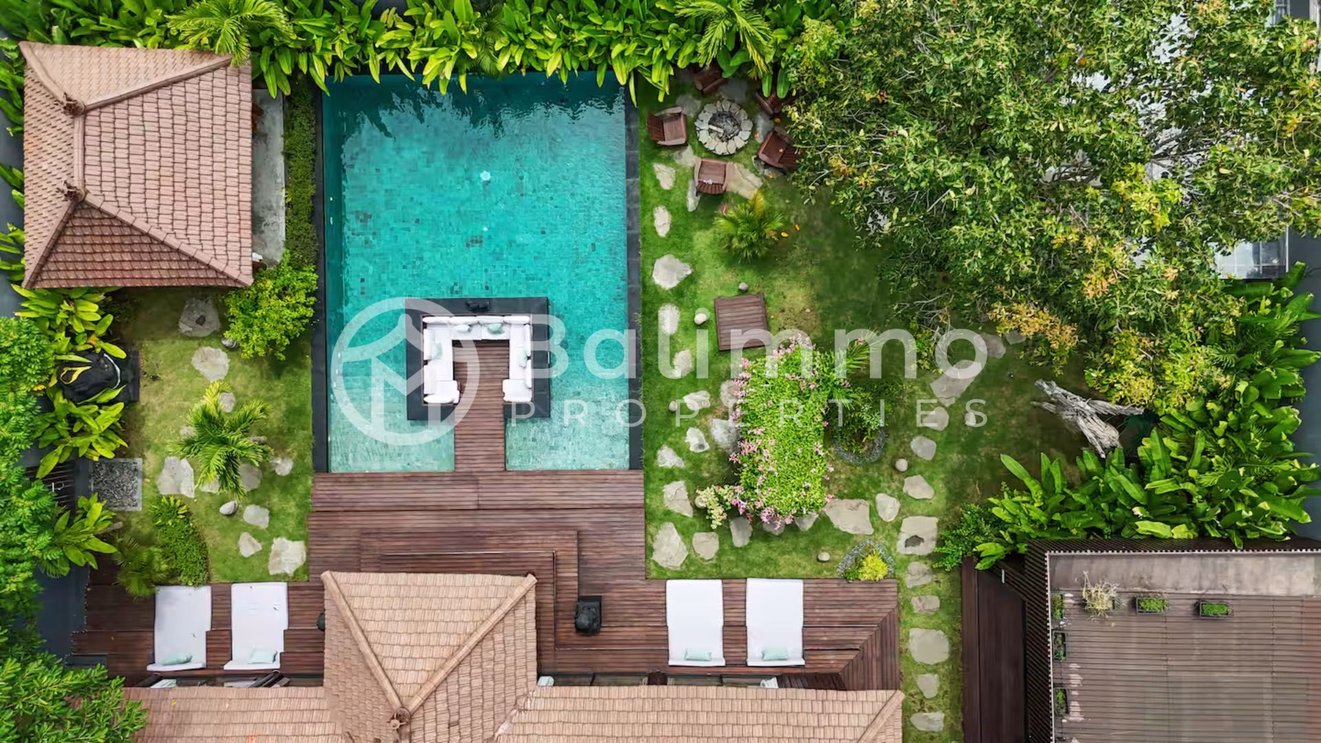 Modern 4-Bedroom Designer Villa with Award-Winning Architecture – Jimbaran Nestled within a secure residential complex in Jimbaran’s Bukit area, this villa offers a serene environment surrounded by tropical gardens and upscale homes. The property is only minutes from Bali’s most beautiful beaches, including Jimbaran Bay, Balangan, and Nusa Dua, and close to restaurants, international schools, and wellness centers. Ngurah Rai International Airport is a 25-minute drive away. Built on a 711m2/7.1 are plot, the villa showcases contemporary Balinese architecture with refined finishes and open tropical design. The outdoor area features a 72 m² swimming pool, sun deck, and a manicured garden with lush greenery. A covered carport with automatic gate ensures comfort and security. The property also includes a private well, bio septic tank, and LED exterior lighting for optimal efficiency and convenience. Spanning 284 m² of living space, the villa comprises four spacious ensuite bedrooms, each with direct terrace or pool access. The open-plan living area integrates a modern kitchen equipped with premium appliances and a dining space for up to eight guests. Additional features include a home cinema with laser projector and high-quality audio system, a private sauna, and a yoga room. High-end materials, designer lighting, and natural textures create an elegant, warm atmosphere throughout. Additional Information • Leasehold: 28 years + guaranteed 20-year extension • Land size: 711m2/7.11 are • Permit : SHM • Building size: 284 m² • Year: 2024 • Fully furnished • Air conditioning and high-speed internet • Ideal for residential or rental investment (estimated annual yield up to 20.8%) • Price: IDR 13,335,000,000 BALIMMO PROPERTIES – Contact us to schedule a visit.