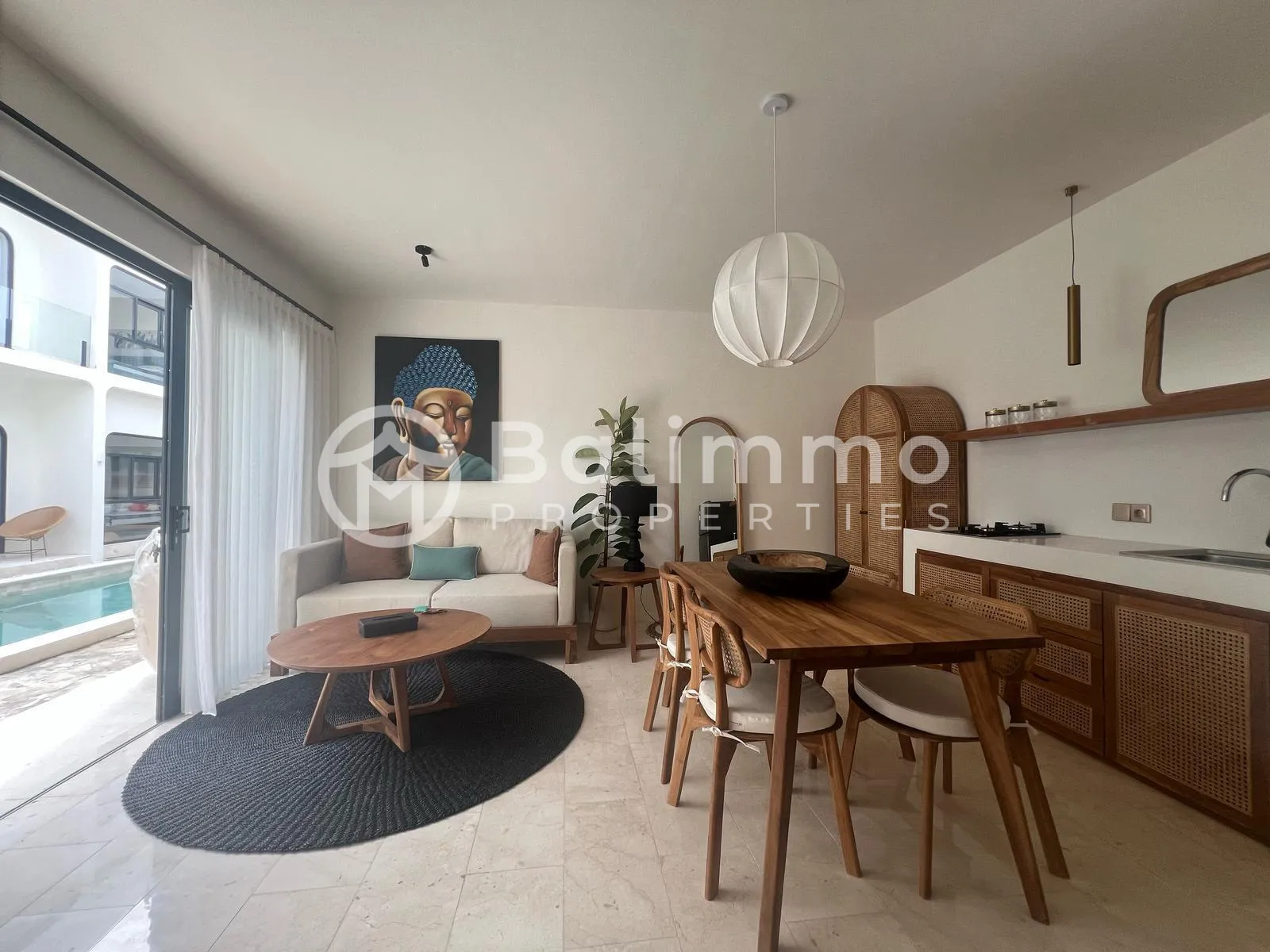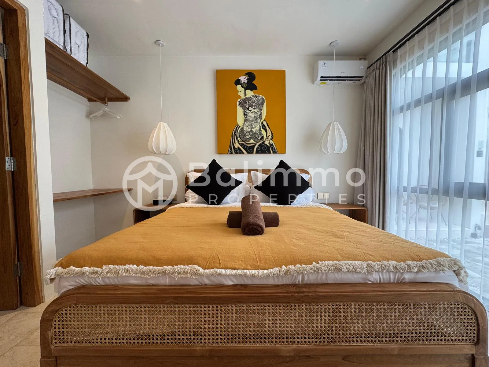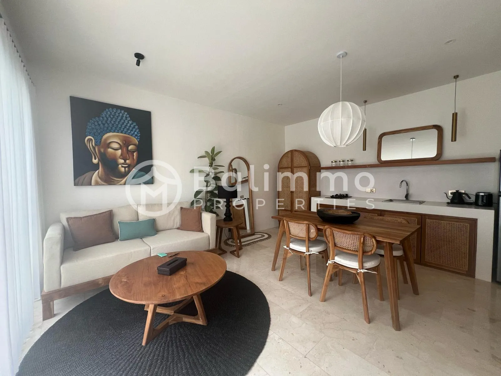 Located in a residential area with easy access, this ground-floor apartment is set within a managed complex. The neighborhood is calm and suitable for both residential use and short-term rentals, with convenient access to daily amenities. The property is zoned Yellow and benefits from an SLF permit, allowing legal operation for Airbnb. The apartment is located within short driving distance of Batu Bolong Beach and Old Man’s (around 5 minutes), Deus Ex Machina (around 6 minutes), Echo Beach and La Brisa Bali (around 7 minutes), Berawa Beach and Finns Beach Club (around 10 minutes), and Seminyak (around 15 minutes). The apartment is part of a well-maintained complex featuring a shared swimming pool with sunbeds. Common areas are designed for comfort and functionality. The property benefits from quality construction, shared parking spaces for motorbikes and cars, and access to internet services. This downstairs unit, Apartment 3A, offers a building size of 45 sqm on 50 sqm of land. It features one bedroom and one bathroom with a practical layout suitable for both long-term living and short-term rental. The apartment is delivered fully furnished and turnkey, ready for immediate use or Airbnb operation. Additional Information • Status: Leasehold • Lease valid until: 01/09/2048 • Land size: 50 sqm • Building size: 45 sqm • Furnishing: Fully furnished • Zoning: Yellow Zone with SLF permit • Price: USD 129,000 BALIMMO PROPERTIES – Contact us to schedule a visit.