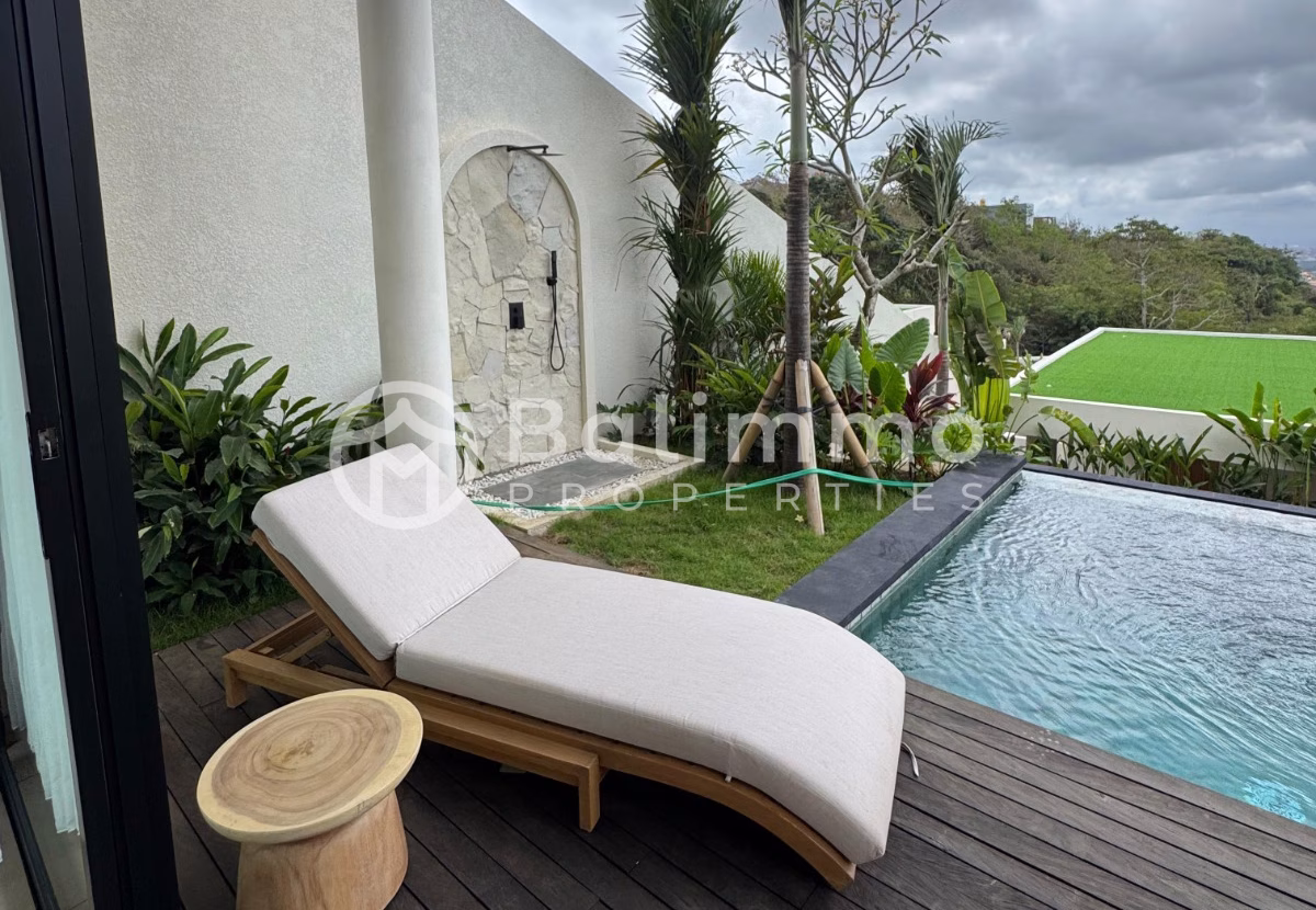 Modern 2-Bedroom Freehold Villa in Goa Gong Located in the peaceful residential area of Goa Gong, this brand-new villa offers excellent access to major destinations in South Bali. It is only 5 minutes from Udayana University, 20 minutes from Melasti Beach, 25 minutes from Balangan Beach, and about 45 minutes from Ngurah Rai International Airport. The villa sits within a developing complex surrounded by other new properties, ensuring a secure and growing neighborhood. Set on 204 m² of land, the villa features a private swimming pool, parking area, and a clean architectural design. The property is part of a gated complex with convenient access and good road infrastructure. The building spans 174.3 m² and was completed in September. It offers two bedrooms and two bathrooms, a closed living room, and a fully equipped kitchen. The villa comes fully furnished, including kitchen equipment and Wi-Fi, making it ready to move in or rent out immediately. Villa Detail Information : Land Size: 204 m² Building Size: 174.3 m² Completion: September Bedrooms: 2 Bathrooms: 2 Furnishing: Fully furnished Zoning Yellow - Freehold permit ( SHM ) Asking Price : IDR 6.000.000.000 BALIMMO PROPERTIES – Contact us to schedule a visit.