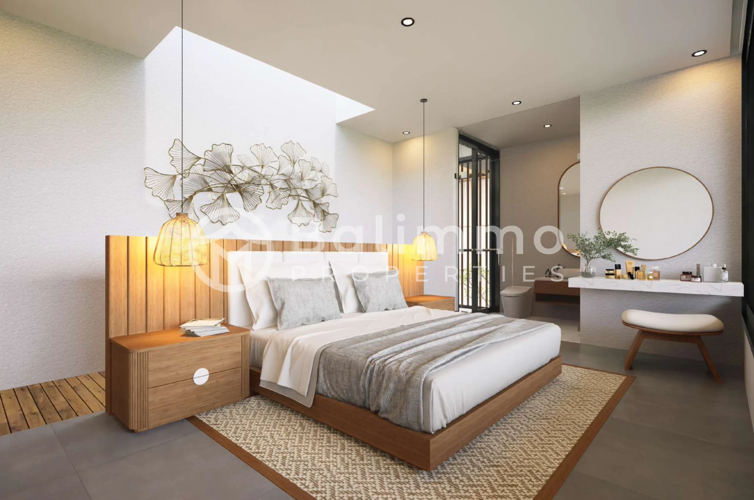 3-Bedroom Villa for Sale Freehold Canggu Center This beautifully designed 3 bedroom freehold villa is located in the heart of Canggu Center, offering a modern architectural style and excellent investment potential. Situated inside a secure 24-hour gated villa complex, the property is surrounded by many neighboring villas and is ideal for daily rental or private living. The villa enjoys a strategic and highly desirable location, with countless cafés, shops, salons, clinics, and entertainment spots just steps away. Location Highlights : Walking distance to shops, restaurants, salons 5 minutes’ to paddle courts 10 minutes’ to Pepito Supermarket 3 minutes’ to Black Sand Bar & Resto 7 minutes’ to Luigi’s Hot Pizza 10 minutes’ to Gigi Susu Café 10 minutes’ to Old Man’s 15 minutes’ to La Brisa Beach Club 10 minutes’ to Batu Bolong Beach Many more shops, cafés, clinics, and restaurants surrounding the area 45 minutes’ drive to Ngurah Rai International Airport Villa Details : Land Size: 188 m² Building Size: 269 m² Bedrooms: 3 Bathrooms: 3 Swimming Pool Closed Living Room Fully Furnished Kitchen Equipment Included Air Conditioners Deep Well (Water Drill) Year of Completion: april 2026 Zoning: Yellow Ownership: Freehold (SHM) Asking Price : IDR 8.850.000.000 BALIMMO PROPERTIES – Contact us to schedule a visit.
