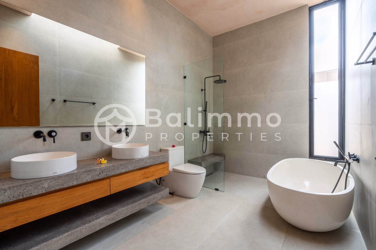Newly Built 4-Bedroom Villa with Modern Minimalist Design in Tiying Tutul, Pererenan Surroundings / Location Located in the peaceful area of Tiying Tutul, Pererenan, this villa offers a quiet residential setting within easy reach of trendy cafes, restaurants, and attractions. Pererenan is one of Bali's most desirable neighborhoods, combining laid-back charm with excellent connectivity to Canggu and the beach. The villa sits on 448 sqm of land and features clean modern lines, a landscaped garden, private parking, a gated entrance, and an infinity pool with sun decks. Large bay windows provide natural light and connect indoor and outdoor spaces. Spanning 267 sqm over two floors, the villa includes four bedrooms with ensuite bathrooms, a spacious living room, a modern kitchen with BOSCH appliances, and a dining area. It also has a helper’s room and storage. The interior blends minimalist design with quality finishes and is fully furnished. Additional Information * Leasehold until 03/04/2049 (24 years) * Land size: 448 sqm * Building size: 267 sqm * Year of completion: 2024 * Fully furnished * Orientation: Garden and pool view * Interior by Italian designer * Permit: SHM * Zoning: yellow (residential) BALIMMO PROPERTIES – Contact us to schedule a visit.