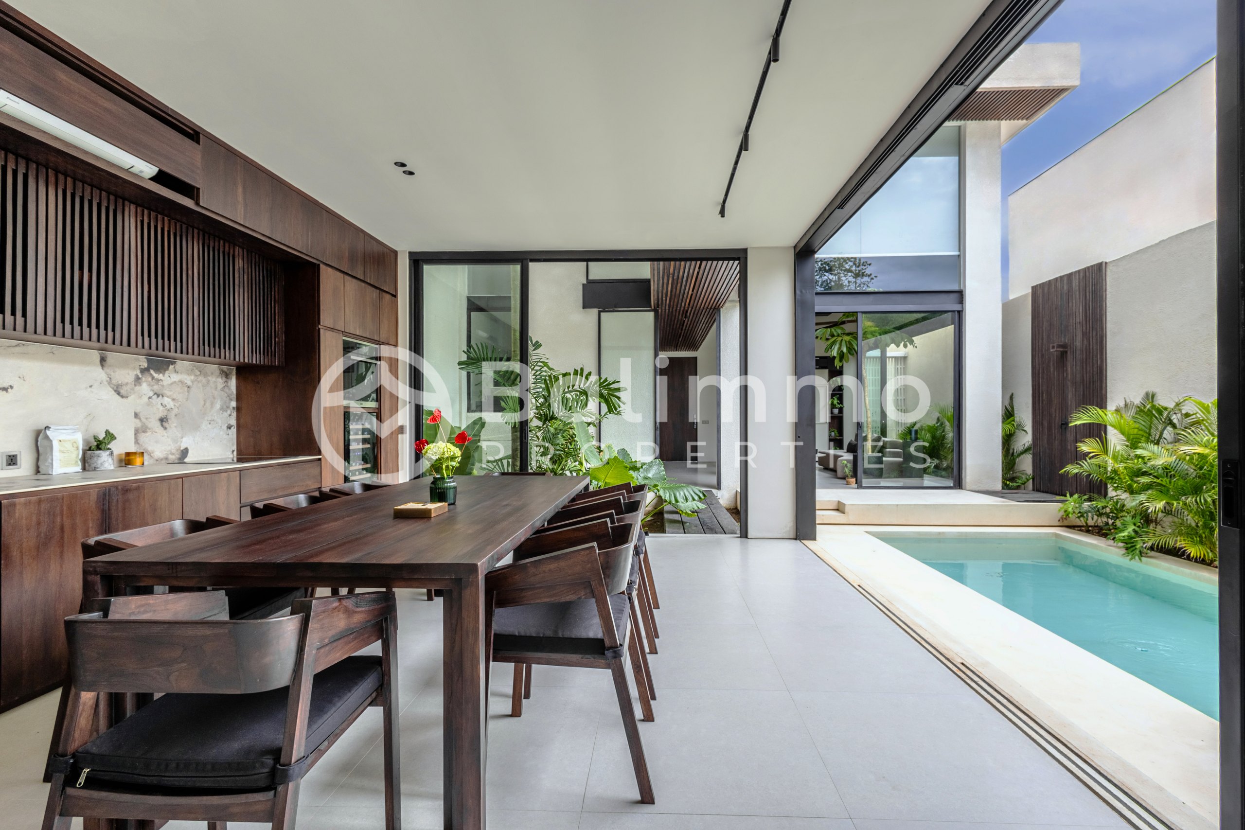 Villa Hikari – Leasehold in Bingin, Uluwatu Surroundings Located in Bingin, Uluwatu, this villa offers direct proximity to Uluwatu Beach, with cafés, restaurants, and surf spots just minutes away. The area is residential yet lively, known for its coastal charm and easy access to the main roads of South Bali. Exterior The villa sits on a landscaped plot with a tropical garden and private swimming pool. Modern architecture blends with natural materials, creating a warm and stylish atmosphere. Wide sliding doors connect the living areas to the outdoor terrace, while parking space and secure gated access complete the exterior features. Interior The property features a bright open-plan living and dining area, complemented by a fully equipped modern kitchen. Large windows bring in natural light and garden views. The villa offers multiple bedrooms with en-suite bathrooms, designed with wood finishes and polished floors, balancing comfort and elegance. The layout combines modern design with tropical accents, ideal for both personal use and rental opportunities. Additional Information • Legal status: Leasehold • Lease duration: Until 1 March 2053 • Land size: 2.30 are • Building size: Approx. 200 m² • Year built: 2023 • Furnished: Yes • Style: Modern tropical • Zoning: Pink Zone BALIMMO PROPERTIES – Contact us to schedule a visit.