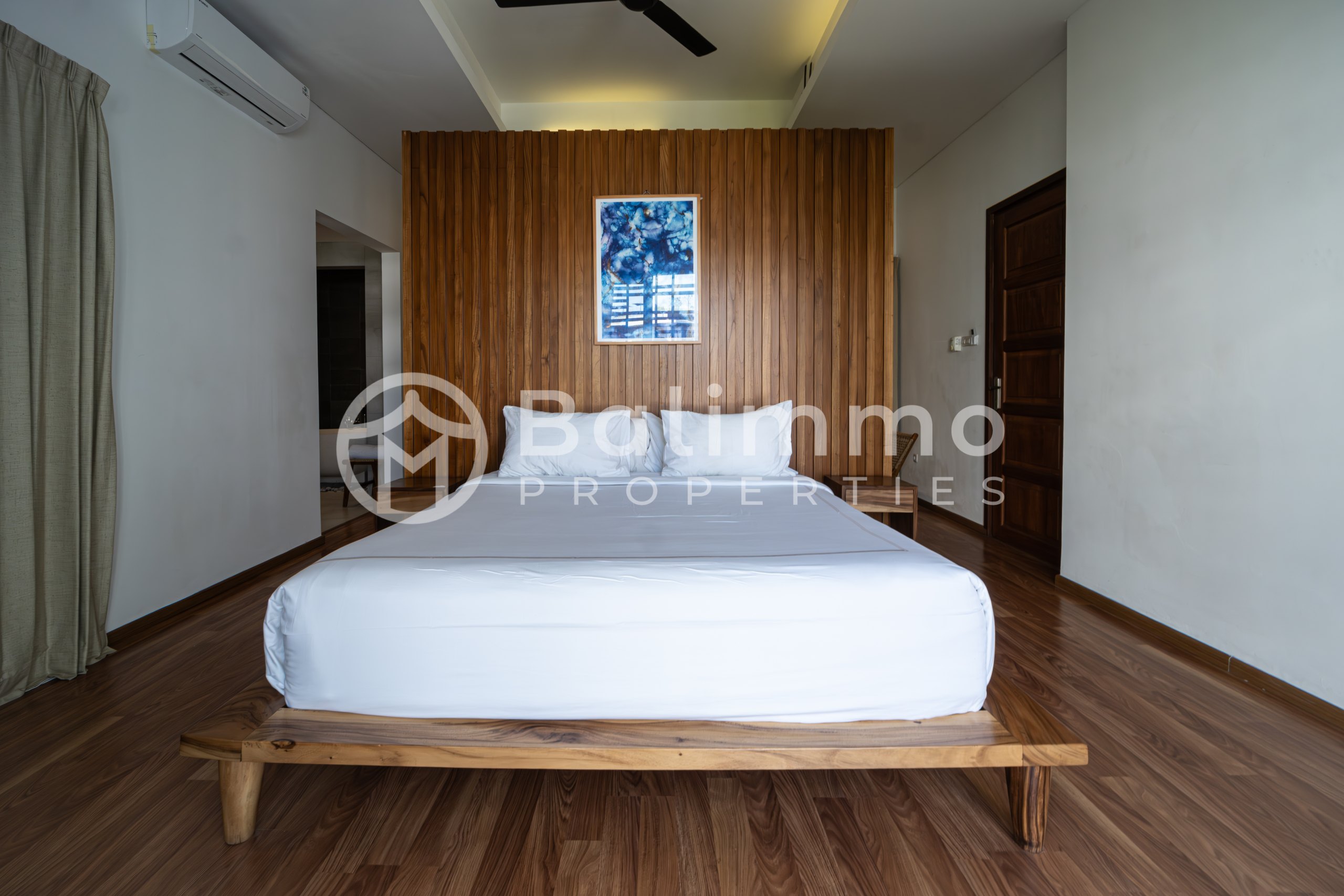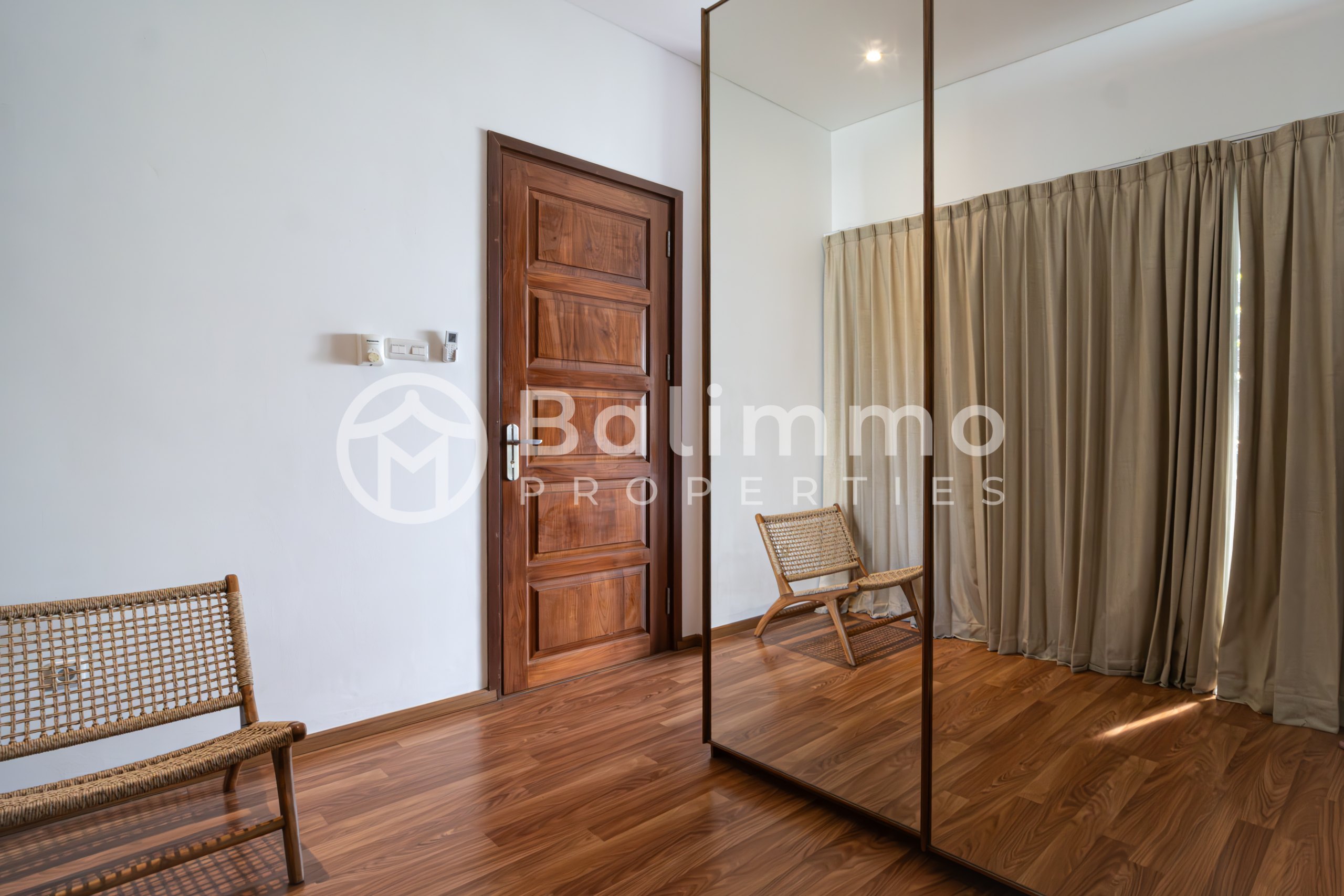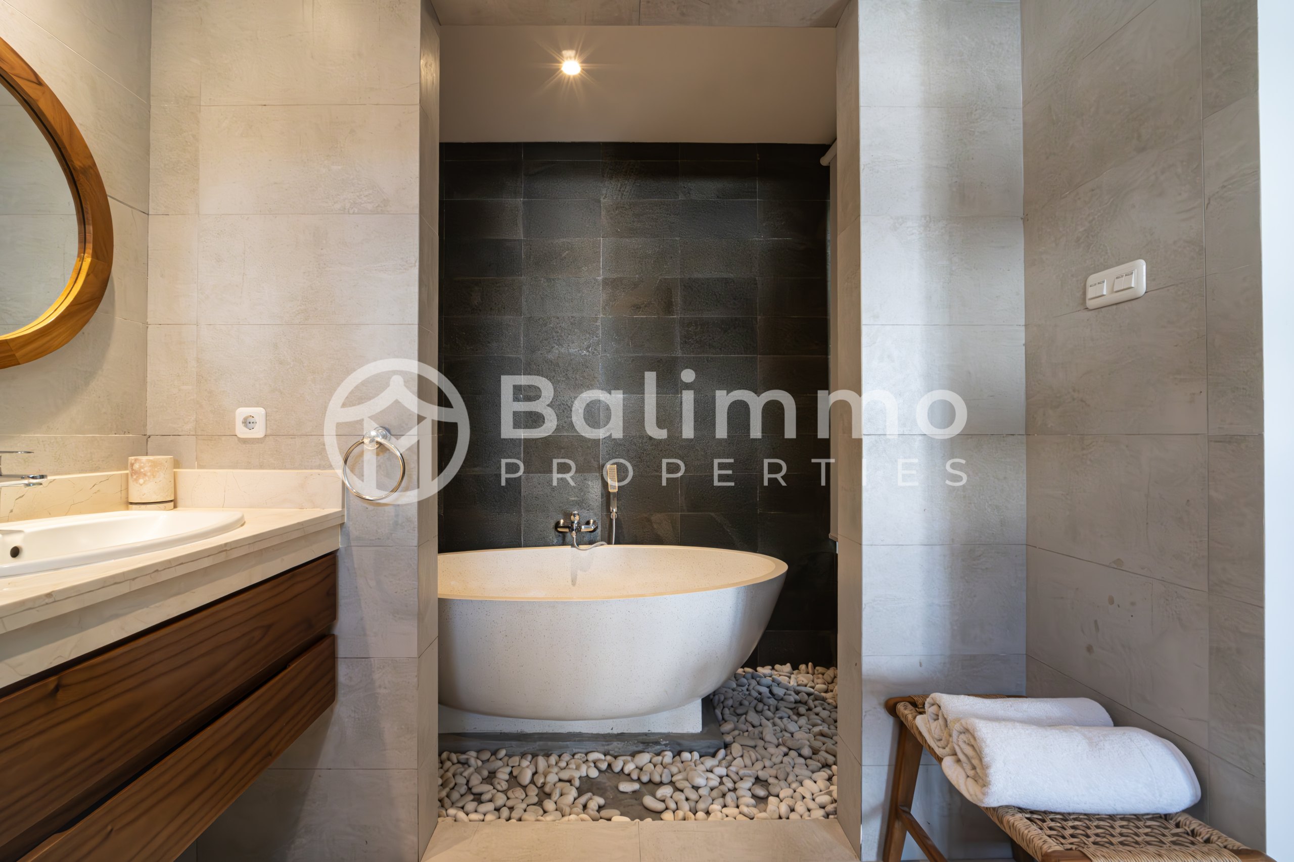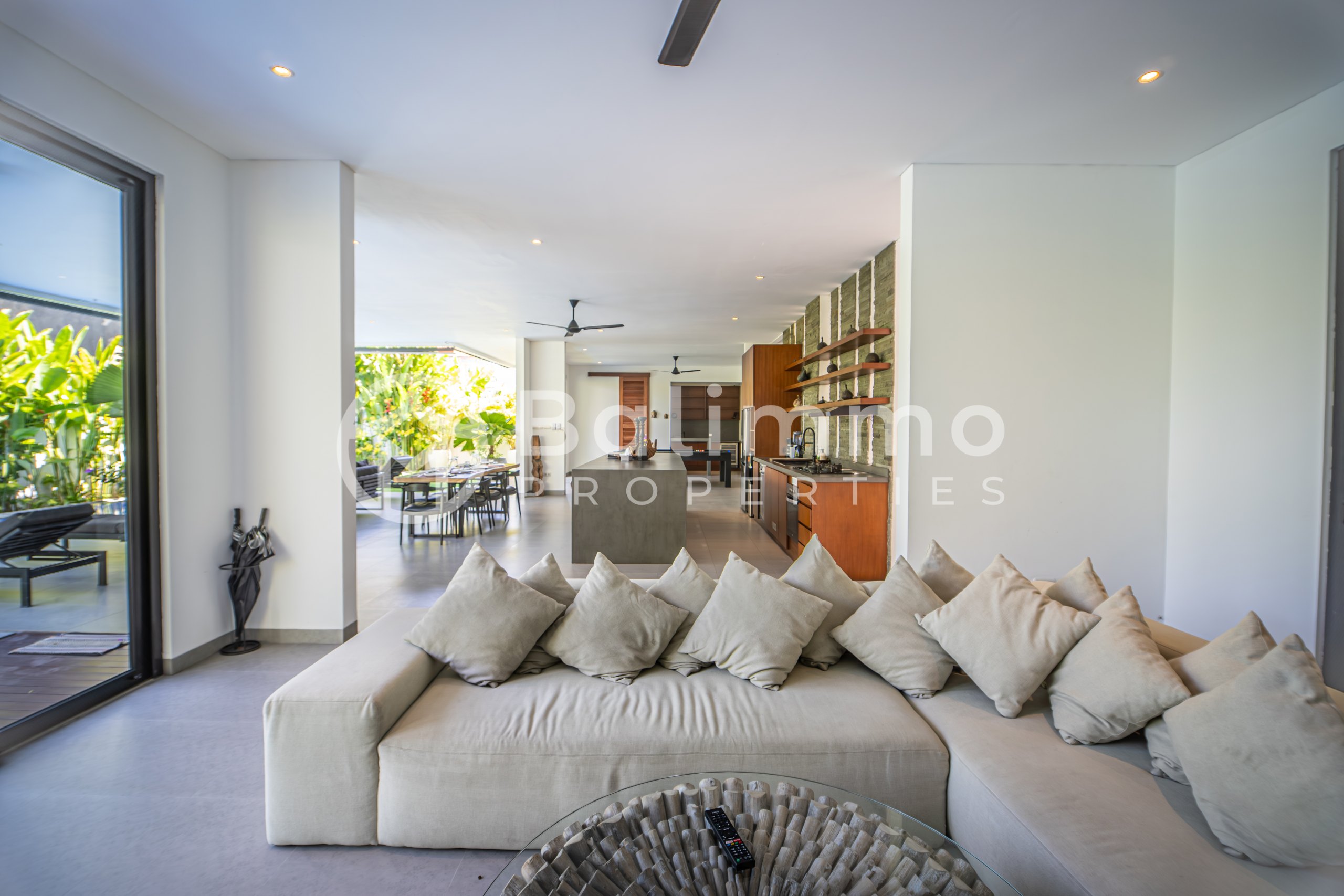 LUXURY 4-Bedroom Villa in Central Canggu Just minutes from Batu Bolong Beach, this villa is located in one of Canggu’s most vibrant yet private areas, surrounded by cafés, beach clubs, gyms, and yoga studios. Set on 4 are of land with 430 m² of built space, the design combines modern lines with tropical elements. Custom wooden screens enhance privacy, while a large swimming pool runs the length of the villa, framed by lush greenery and secure walls. The open-plan living and dining area flows seamlessly to the outdoors. The kitchen is fully equipped with high-end appliances. All four bedrooms include en-suite bathrooms, plus an additional guest bathroom. The villa is fully furnished with quality finishes. Located in the Pink Zone, this leasehold villa includes an SHM (Freehold) permit, ideal for residential use or short-term rentals. Leasehold Land size: 400 m² Building size: 430 m² 4 Bedrooms – 5 Bathrooms Fully furnished Large private pool Pink Zone SHM permit BALIMMO PROPERTIES – Contact us to schedule a visit.