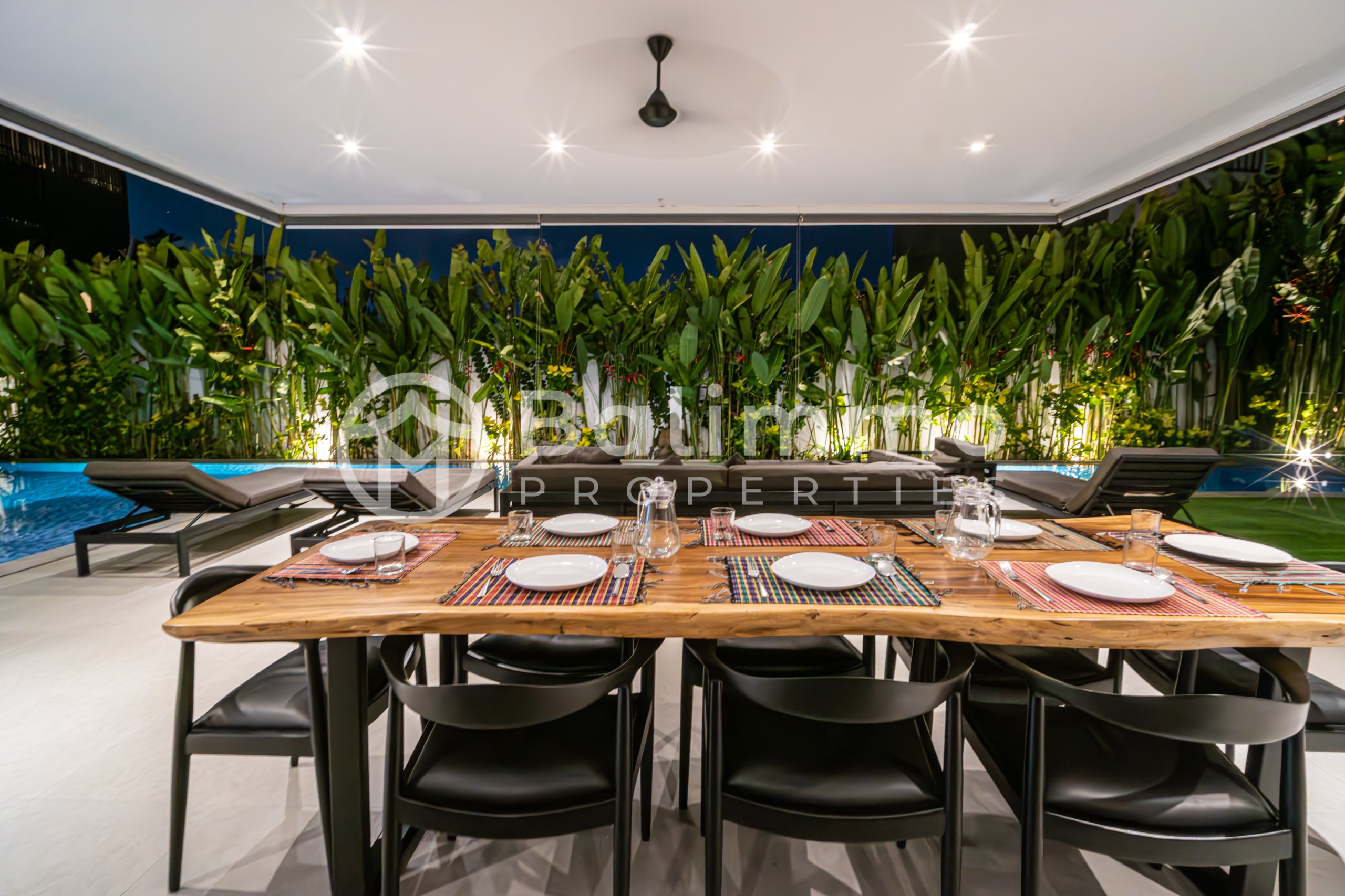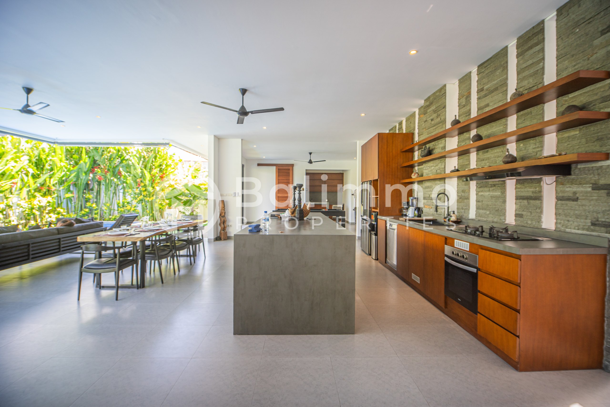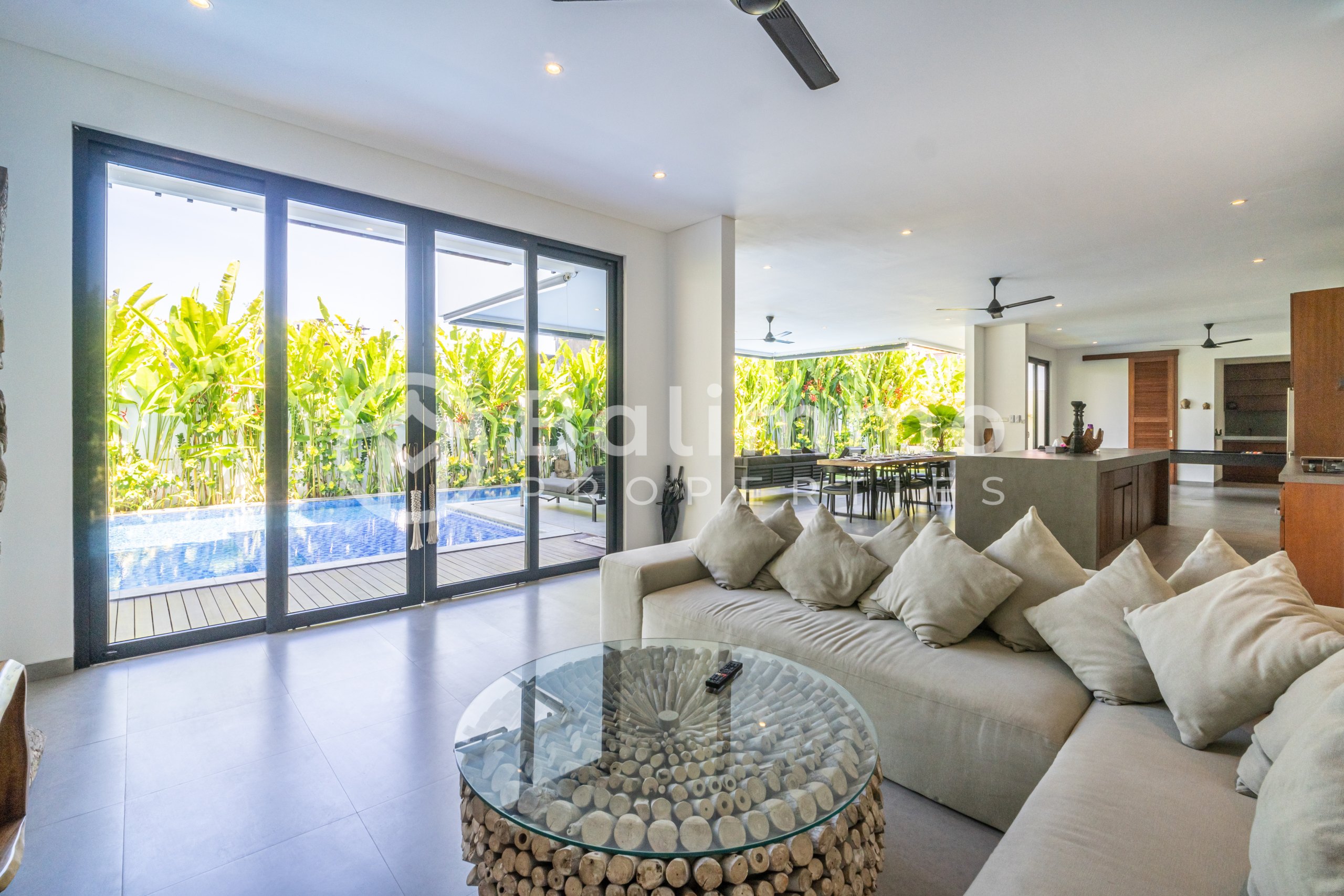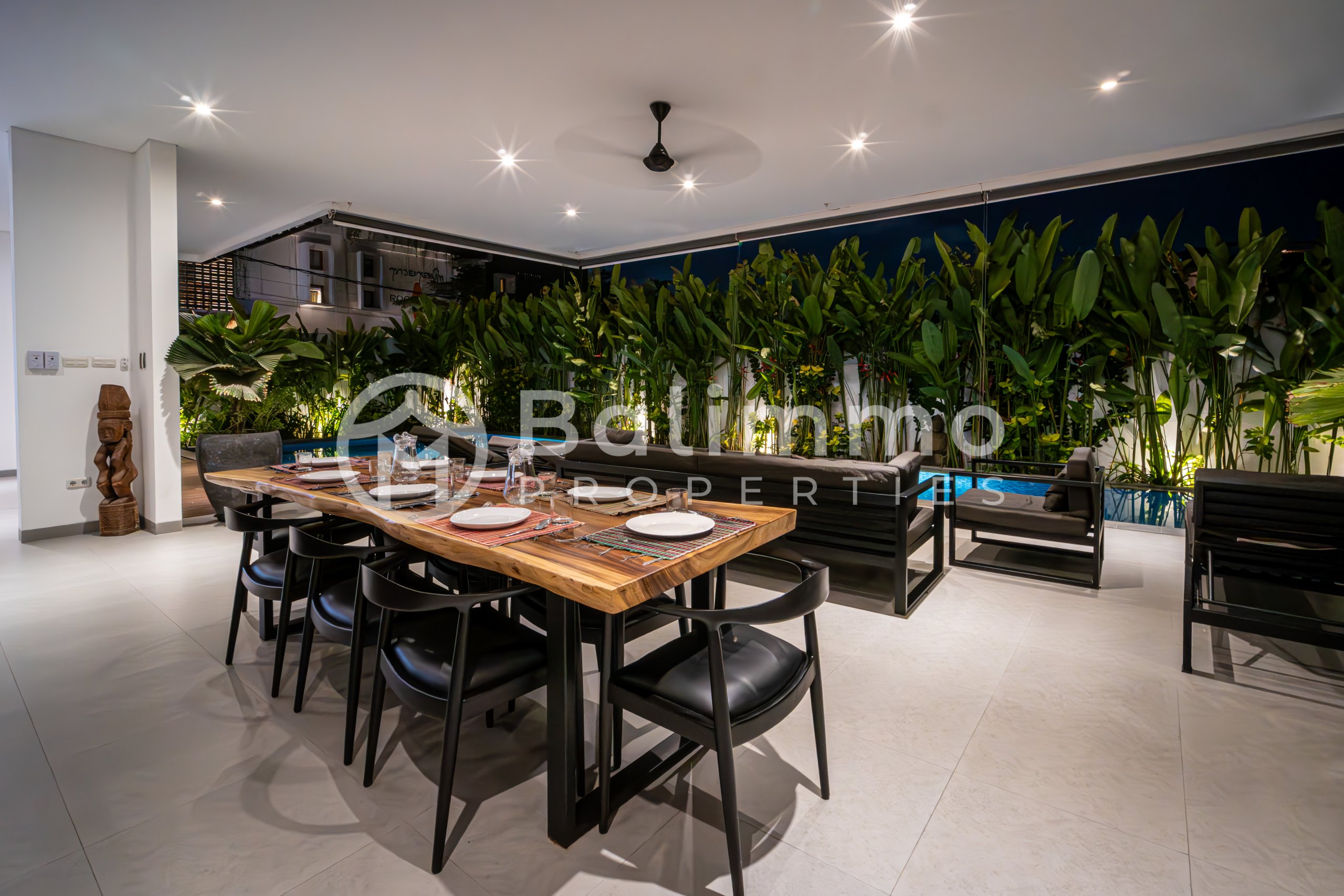 LUXURY 4-Bedroom Villa in Central Canggu Just minutes from Batu Bolong Beach, this villa is located in one of Canggu’s most vibrant yet private areas, surrounded by cafés, beach clubs, gyms, and yoga studios. Set on 4 are of land with 430 m² of built space, the design combines modern lines with tropical elements. Custom wooden screens enhance privacy, while a large swimming pool runs the length of the villa, framed by lush greenery and secure walls. The open-plan living and dining area flows seamlessly to the outdoors. The kitchen is fully equipped with high-end appliances. All four bedrooms include en-suite bathrooms, plus an additional guest bathroom. The villa is fully furnished with quality finishes. Located in the Pink Zone, this leasehold villa includes an SHM (Freehold) permit, ideal for residential use or short-term rentals. Leasehold Land size: 400 m² Building size: 430 m² 4 Bedrooms – 5 Bathrooms Fully furnished Large private pool Pink Zone SHM permit BALIMMO PROPERTIES – Contact us to schedule a visit.